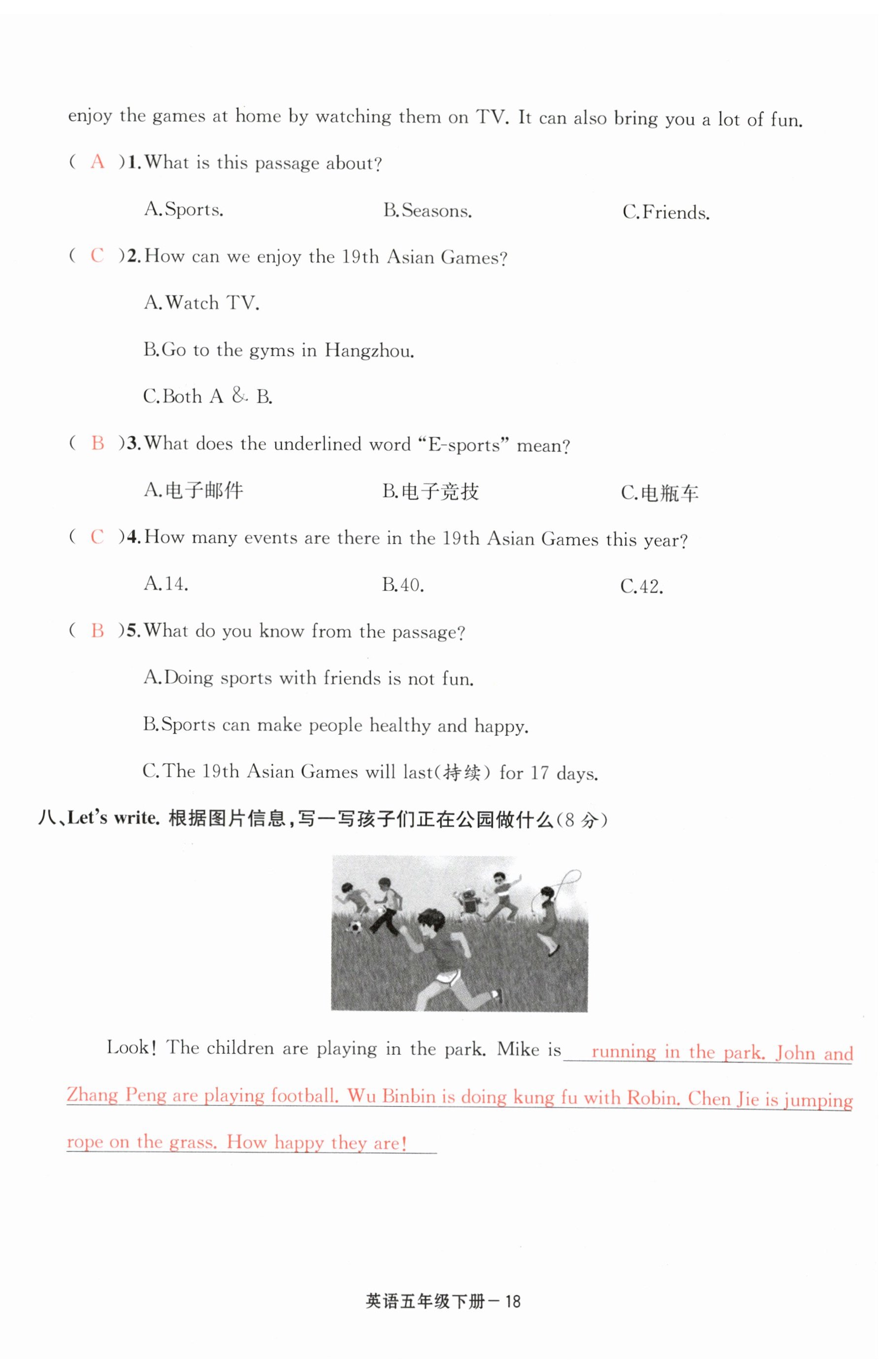 注:目前有些书本章节名称可能整理的还不是很完善,但都是按照顺序排列的,请同学们按照顺序仔细查找。练习册 2024年浙江各地期末迎考卷五年级英语下册人教版 答案主要是用来给同学们做完题方便对答案用的,请勿直接抄袭。