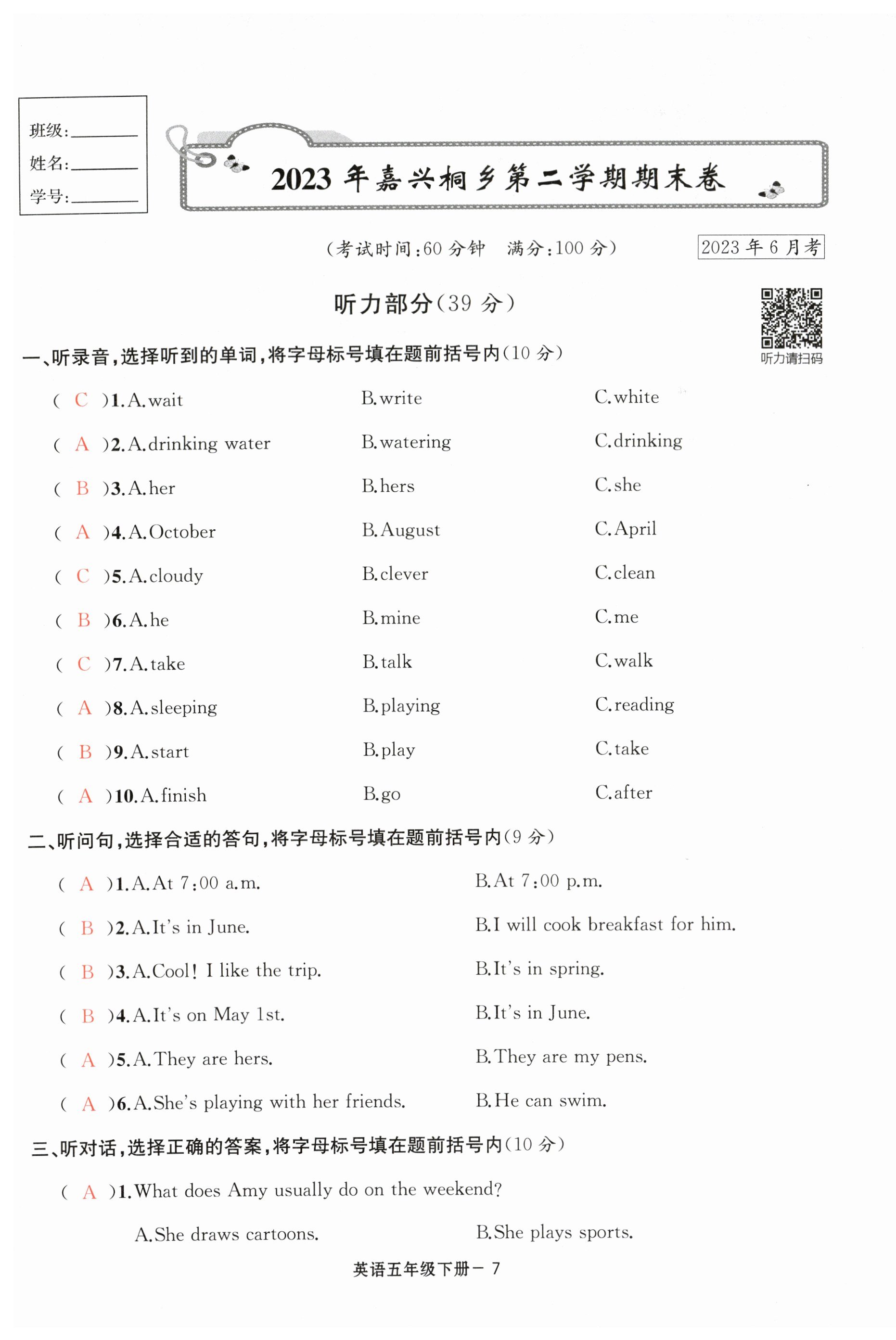 2024年浙江各地期末迎考卷五年级英语下册人教版