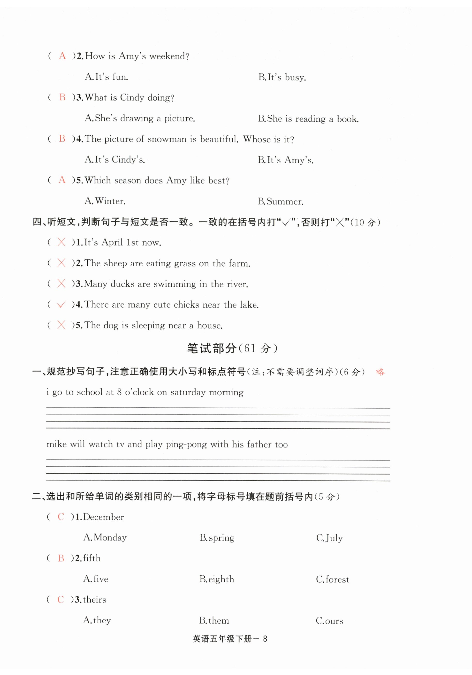 注:目前有些书本章节名称可能整理的还不是很完善,但都是按照顺序排列的,请同学们按照顺序仔细查找。练习册 2024年浙江各地期末迎考卷五年级英语下册人教版 答案主要是用来给同学们做完题方便对答案用的,请勿直接抄袭。