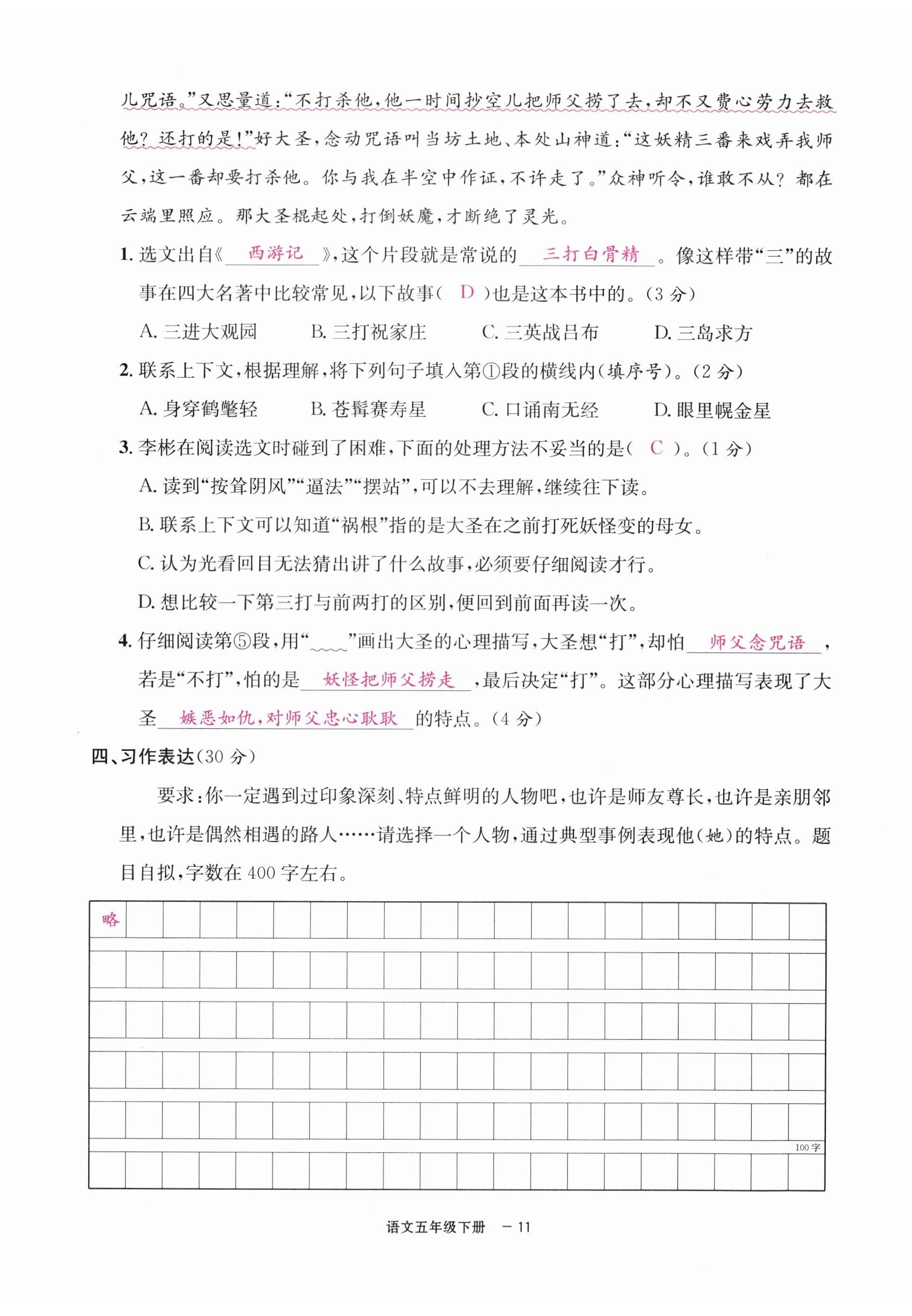 注:目前有些书本章节名称可能整理的还不是很完善,但都是按照顺序排列的,请同学们按照顺序仔细查找。练习册 2024年浙江各地期末迎考卷五年级语文下册人教版 答案主要是用来给同学们做完题方便对答案用的,请勿直接抄袭。