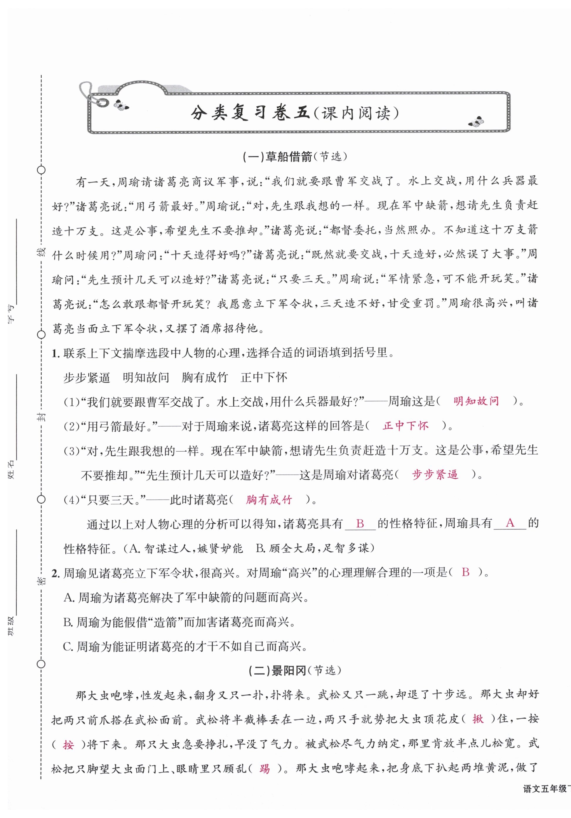 注:目前有些书本章节名称可能整理的还不是很完善,但都是按照顺序排列的,请同学们按照顺序仔细查找。练习册 2024年浙江各地期末迎考卷五年级语文下册人教版 答案主要是用来给同学们做完题方便对答案用的,请勿直接抄袭。