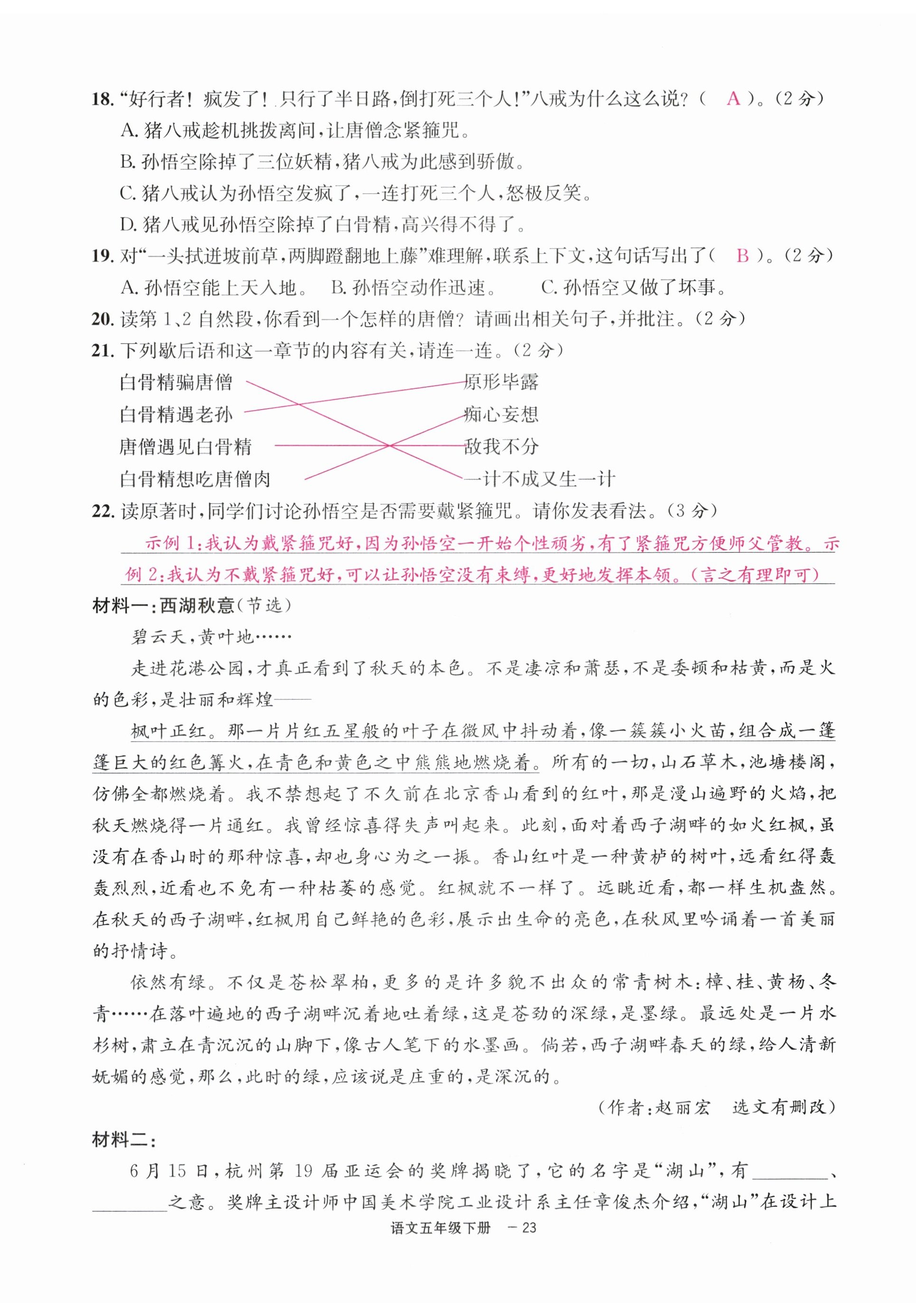 注:目前有些书本章节名称可能整理的还不是很完善,但都是按照顺序排列的,请同学们按照顺序仔细查找。练习册 2024年浙江各地期末迎考卷五年级语文下册人教版 答案主要是用来给同学们做完题方便对答案用的,请勿直接抄袭。