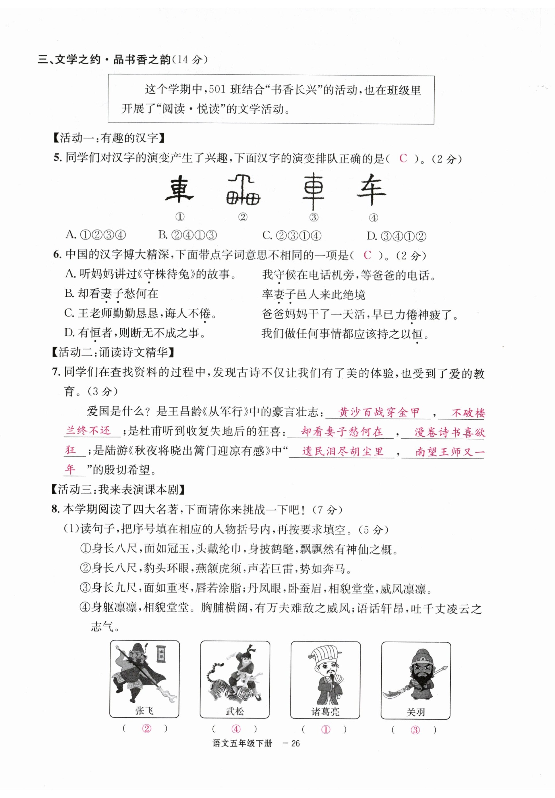 注:目前有些书本章节名称可能整理的还不是很完善,但都是按照顺序排列的,请同学们按照顺序仔细查找。练习册 2024年浙江各地期末迎考卷五年级语文下册人教版 答案主要是用来给同学们做完题方便对答案用的,请勿直接抄袭。