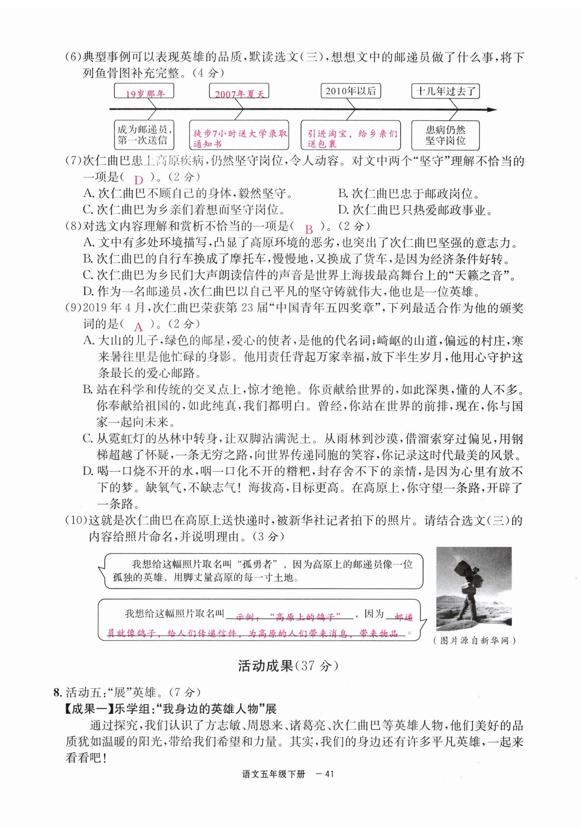注:目前有些书本章节名称可能整理的还不是很完善,但都是按照顺序排列的,请同学们按照顺序仔细查找。练习册 2024年浙江各地期末迎考卷五年级语文下册人教版 答案主要是用来给同学们做完题方便对答案用的,请勿直接抄袭。