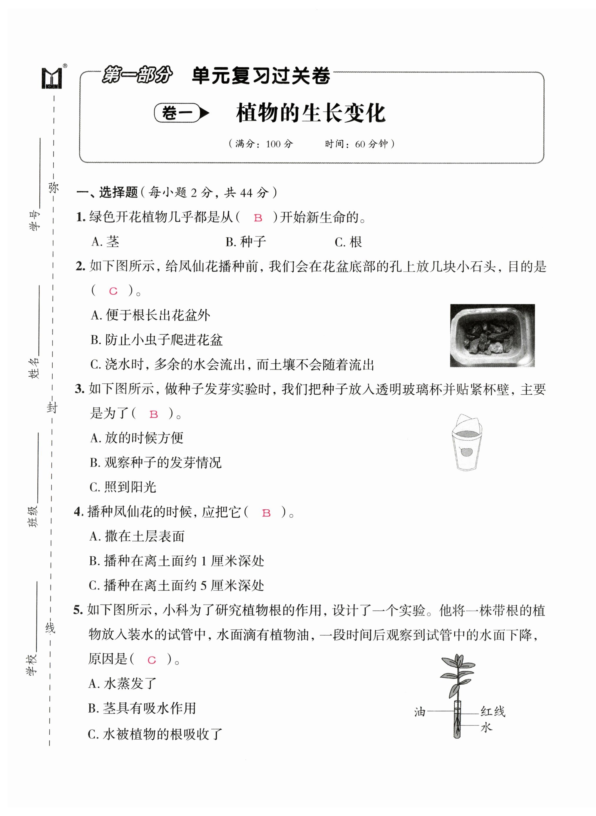 注:目前有些书本章节名称可能整理的还不是很完善,但都是按照顺序排列的,请同学们按照顺序仔细查找。练习册 2024年名师面对面期末大通关四年级科学下册教科版 答案主要是用来给同学们做完题方便对答案用的,请勿直接抄袭。