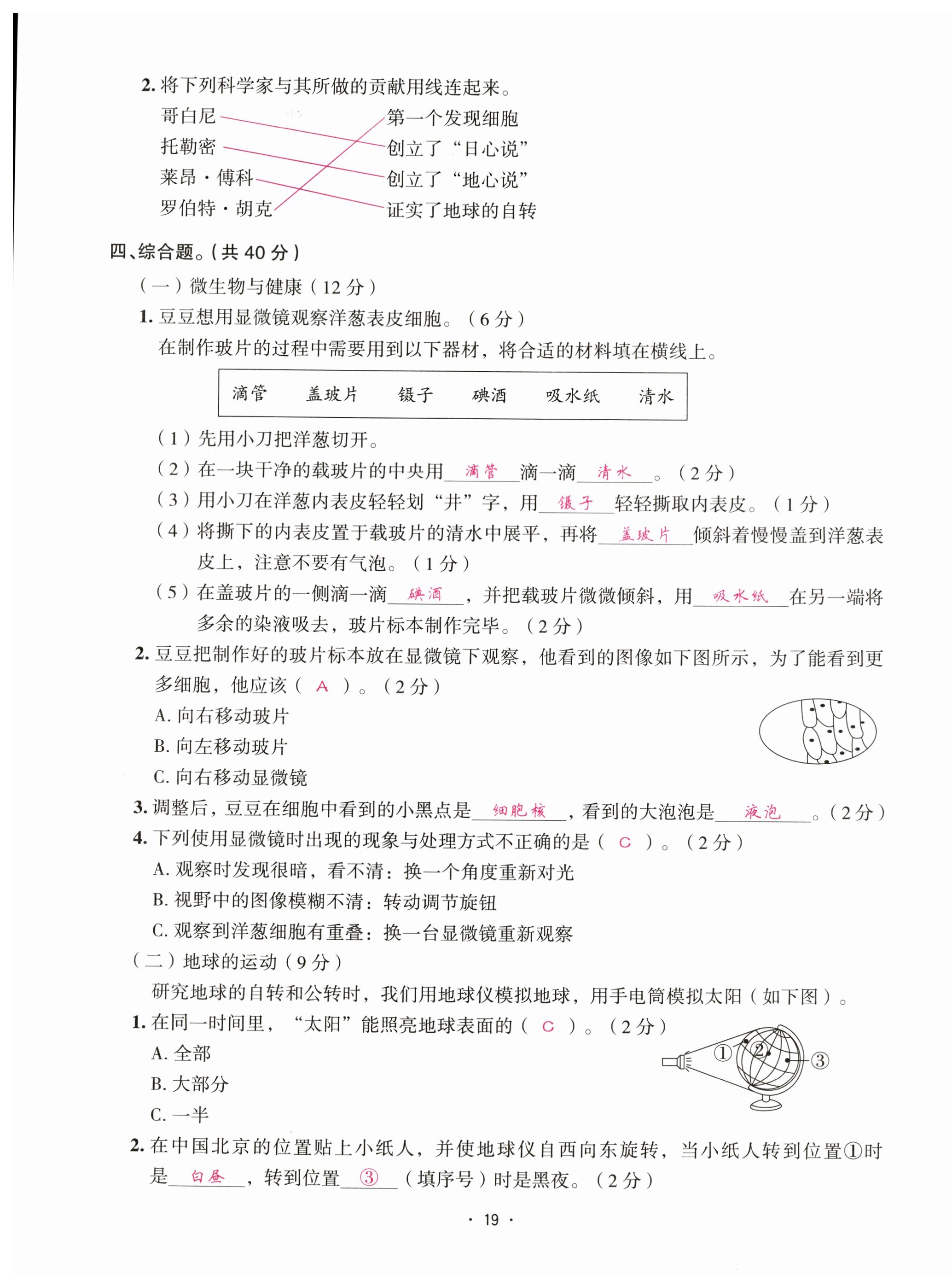 注:目前有些书本章节名称可能整理的还不是很完善,但都是按照顺序排列的,请同学们按照顺序仔细查找。练习册 2024年小考致高点小升初归类冲刺卷六年级科学 答案主要是用来给同学们做完题方便对答案用的,请勿直接抄袭。