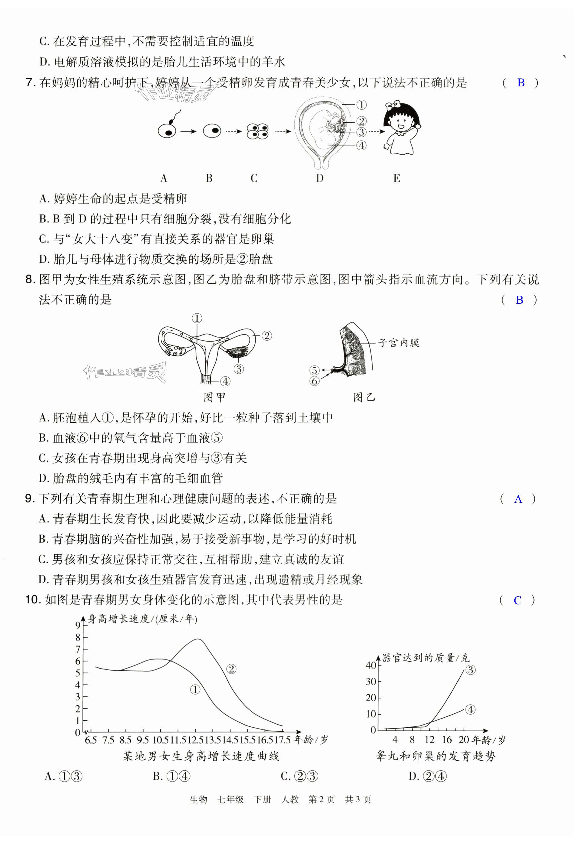 注:目前有些书本章节名称可能整理的还不是很完善,但都是按照顺序排列的,请同学们按照顺序仔细查找。练习册 2024年期末考试必刷卷七年级生物下册人教版郑州专版 答案主要是用来给同学们做完题方便对答案用的,请勿直接抄袭。