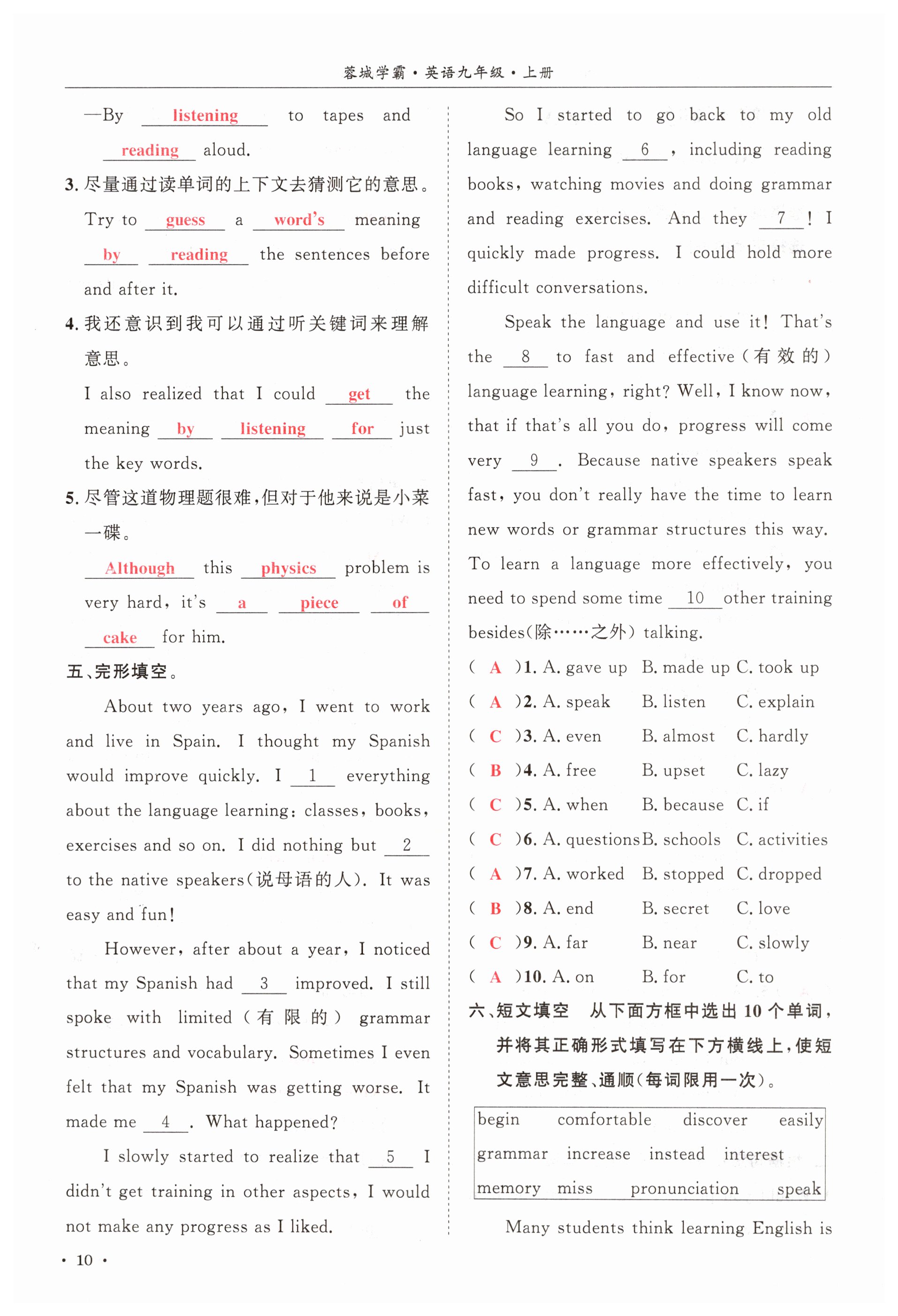注:目前有些书本章节名称可能整理的还不是很完善,但都是按照顺序排列的,请同学们按照顺序仔细查找。练习册 2024年蓉城学霸九年级英语上册人教版 答案主要是用来给同学们做完题方便对答案用的,请勿直接抄袭。