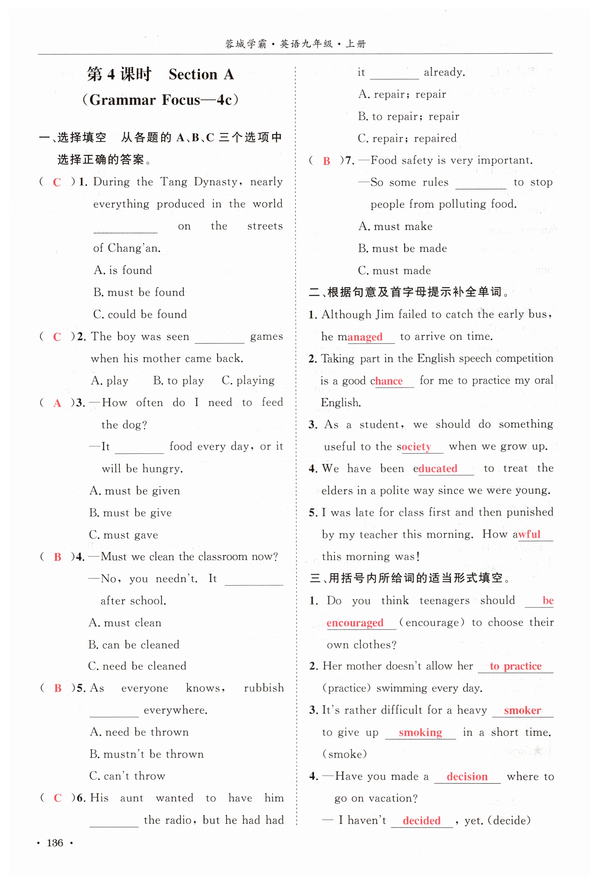 注:目前有些书本章节名称可能整理的还不是很完善,但都是按照顺序排列的,请同学们按照顺序仔细查找。练习册 2024年蓉城学霸九年级英语上册人教版 答案主要是用来给同学们做完题方便对答案用的,请勿直接抄袭。