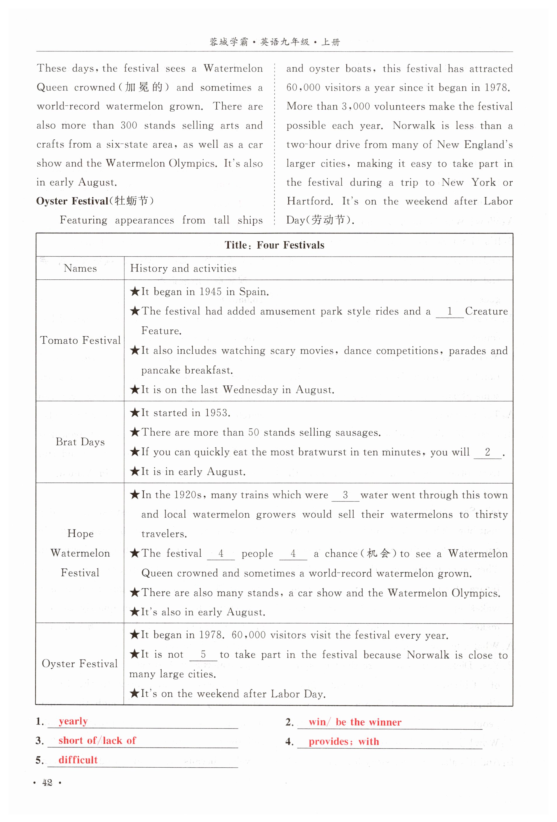 注:目前有些书本章节名称可能整理的还不是很完善,但都是按照顺序排列的,请同学们按照顺序仔细查找。练习册 2024年蓉城学霸九年级英语上册人教版 答案主要是用来给同学们做完题方便对答案用的,请勿直接抄袭。