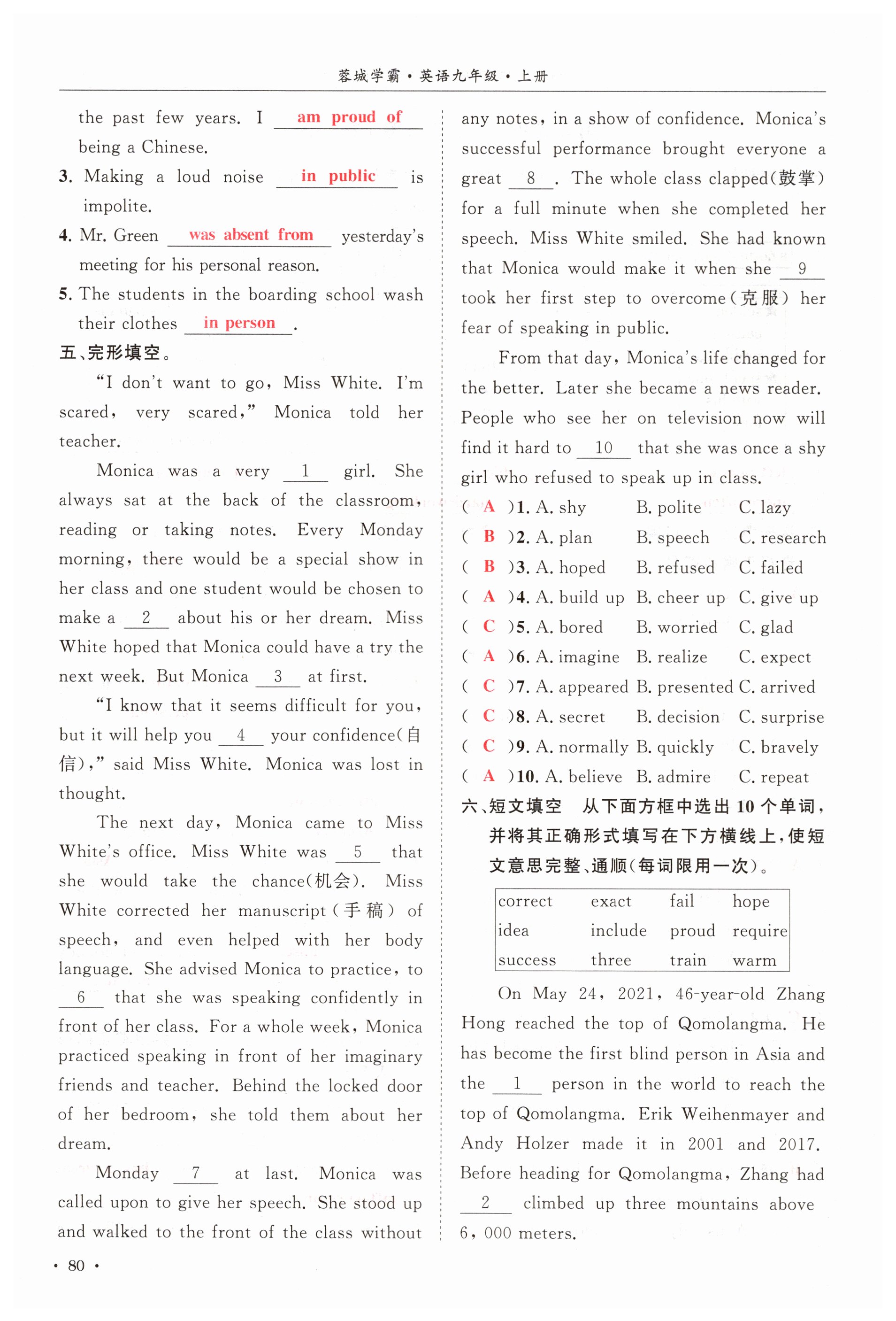 注:目前有些书本章节名称可能整理的还不是很完善,但都是按照顺序排列的,请同学们按照顺序仔细查找。练习册 2024年蓉城学霸九年级英语上册人教版 答案主要是用来给同学们做完题方便对答案用的,请勿直接抄袭。