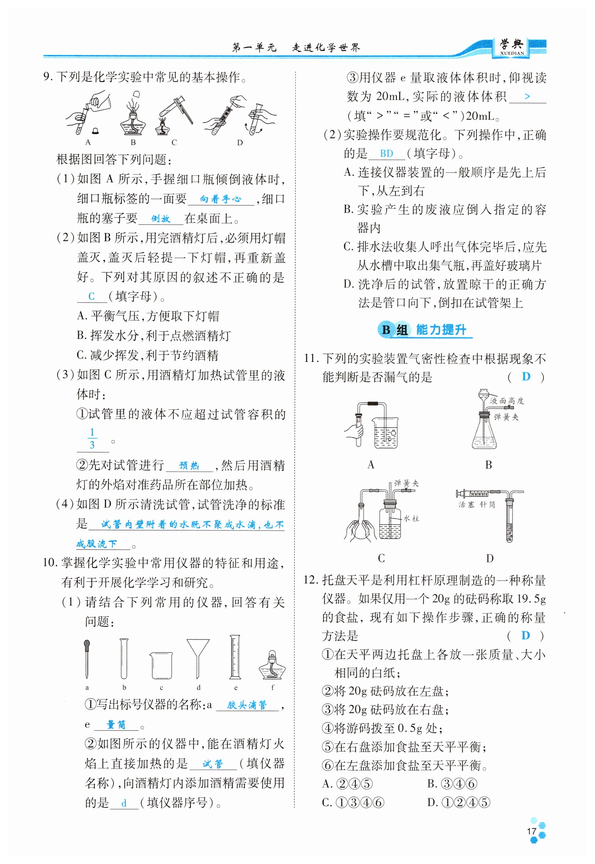 注:目前有些书本章节名称可能整理的还不是很完善,但都是按照顺序排列的,请同学们按照顺序仔细查找。练习册 2024年学典四川九年级化学全一册人教版 答案主要是用来给同学们做完题方便对答案用的,请勿直接抄袭。