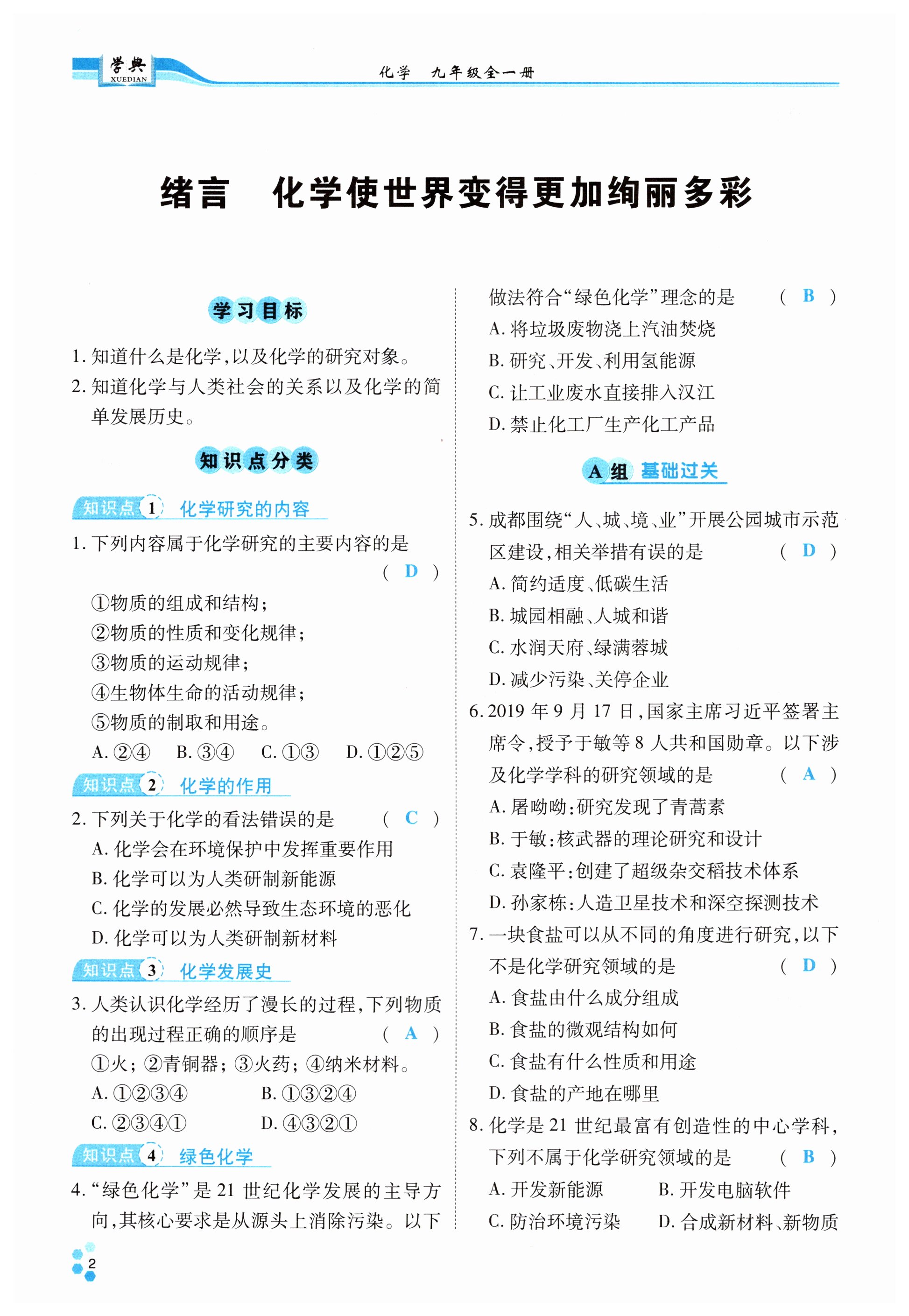 注:目前有些书本章节名称可能整理的还不是很完善,但都是按照顺序排列的,请同学们按照顺序仔细查找。练习册 2024年学典四川九年级化学全一册人教版 答案主要是用来给同学们做完题方便对答案用的,请勿直接抄袭。