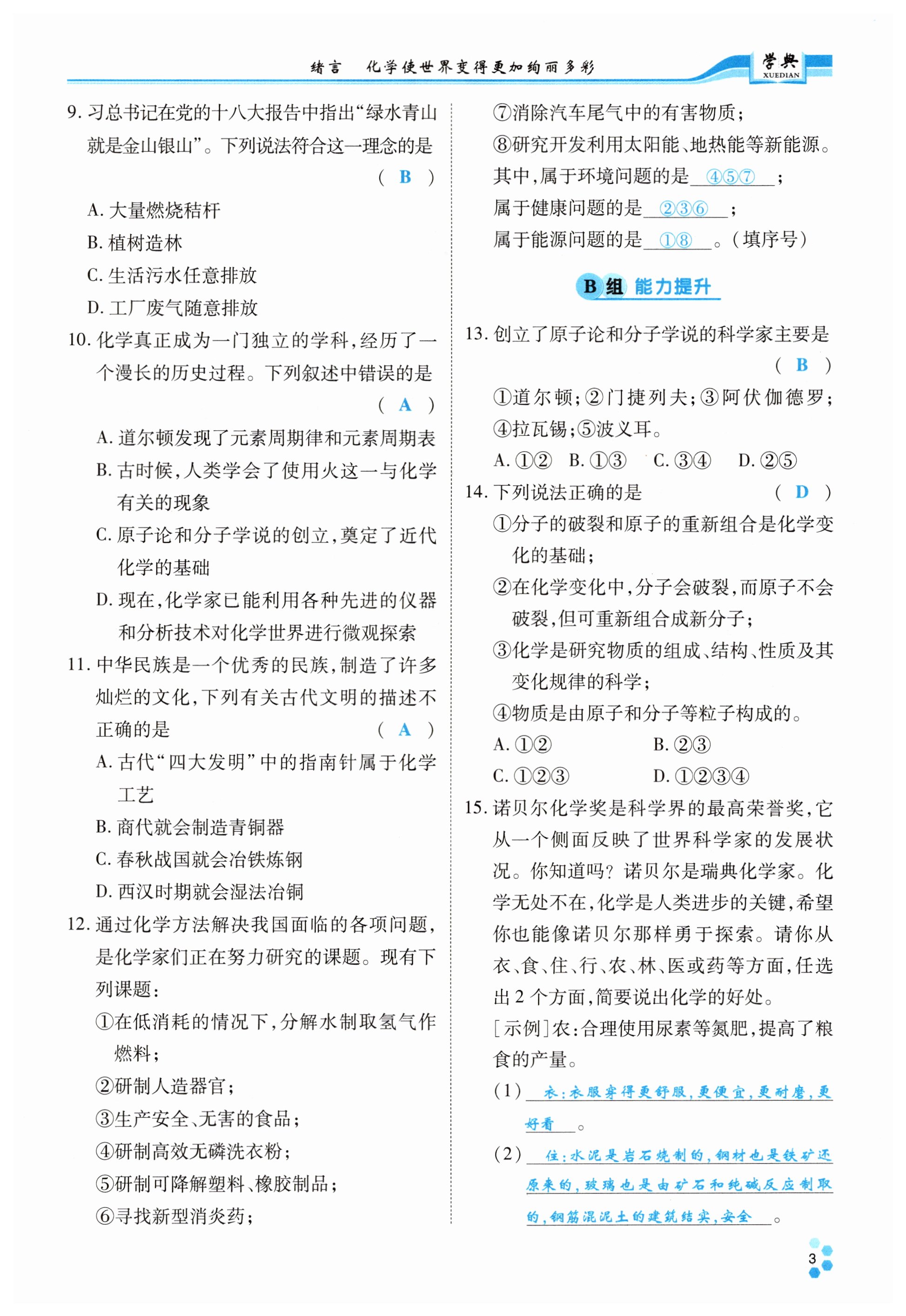 注:目前有些书本章节名称可能整理的还不是很完善,但都是按照顺序排列的,请同学们按照顺序仔细查找。练习册 2024年学典四川九年级化学全一册人教版 答案主要是用来给同学们做完题方便对答案用的,请勿直接抄袭。