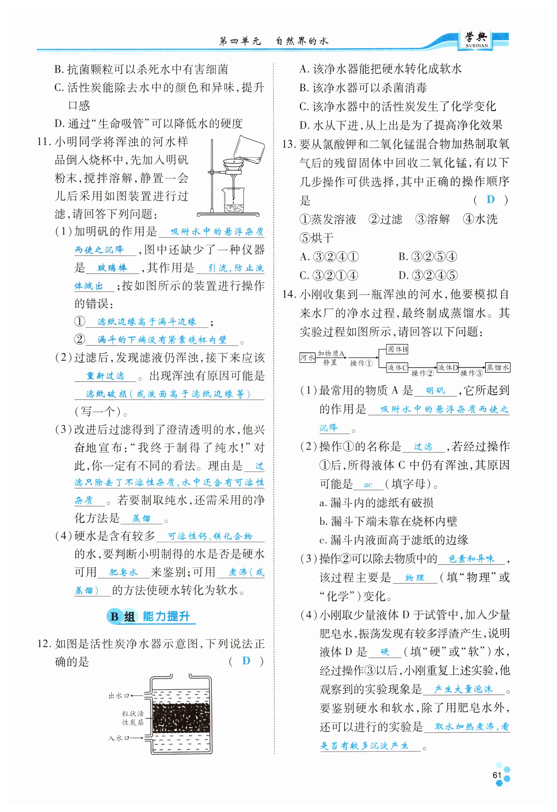 注:目前有些书本章节名称可能整理的还不是很完善,但都是按照顺序排列的,请同学们按照顺序仔细查找。练习册 2024年学典四川九年级化学全一册人教版 答案主要是用来给同学们做完题方便对答案用的,请勿直接抄袭。