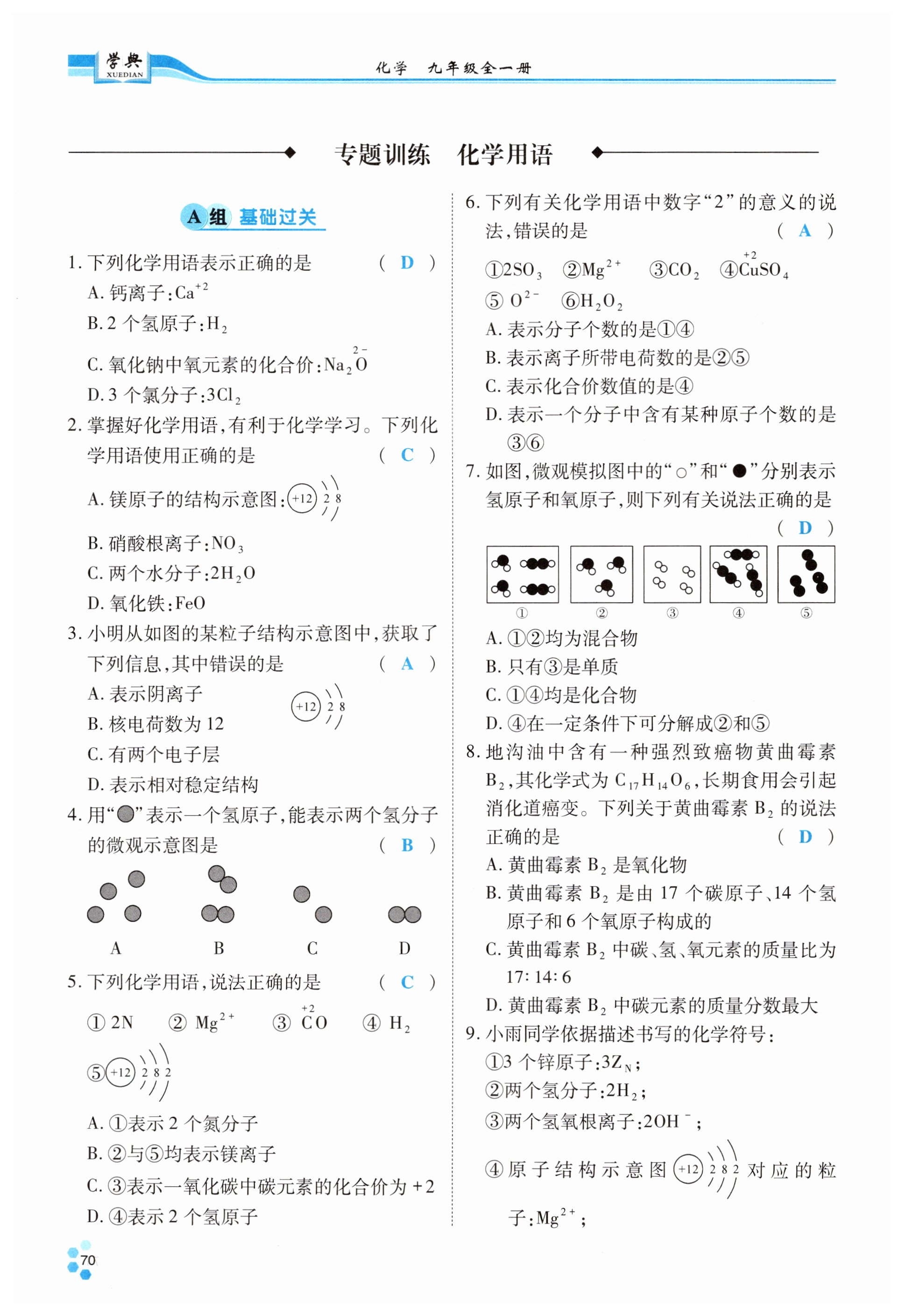 注:目前有些书本章节名称可能整理的还不是很完善,但都是按照顺序排列的,请同学们按照顺序仔细查找。练习册 2024年学典四川九年级化学全一册人教版 答案主要是用来给同学们做完题方便对答案用的,请勿直接抄袭。