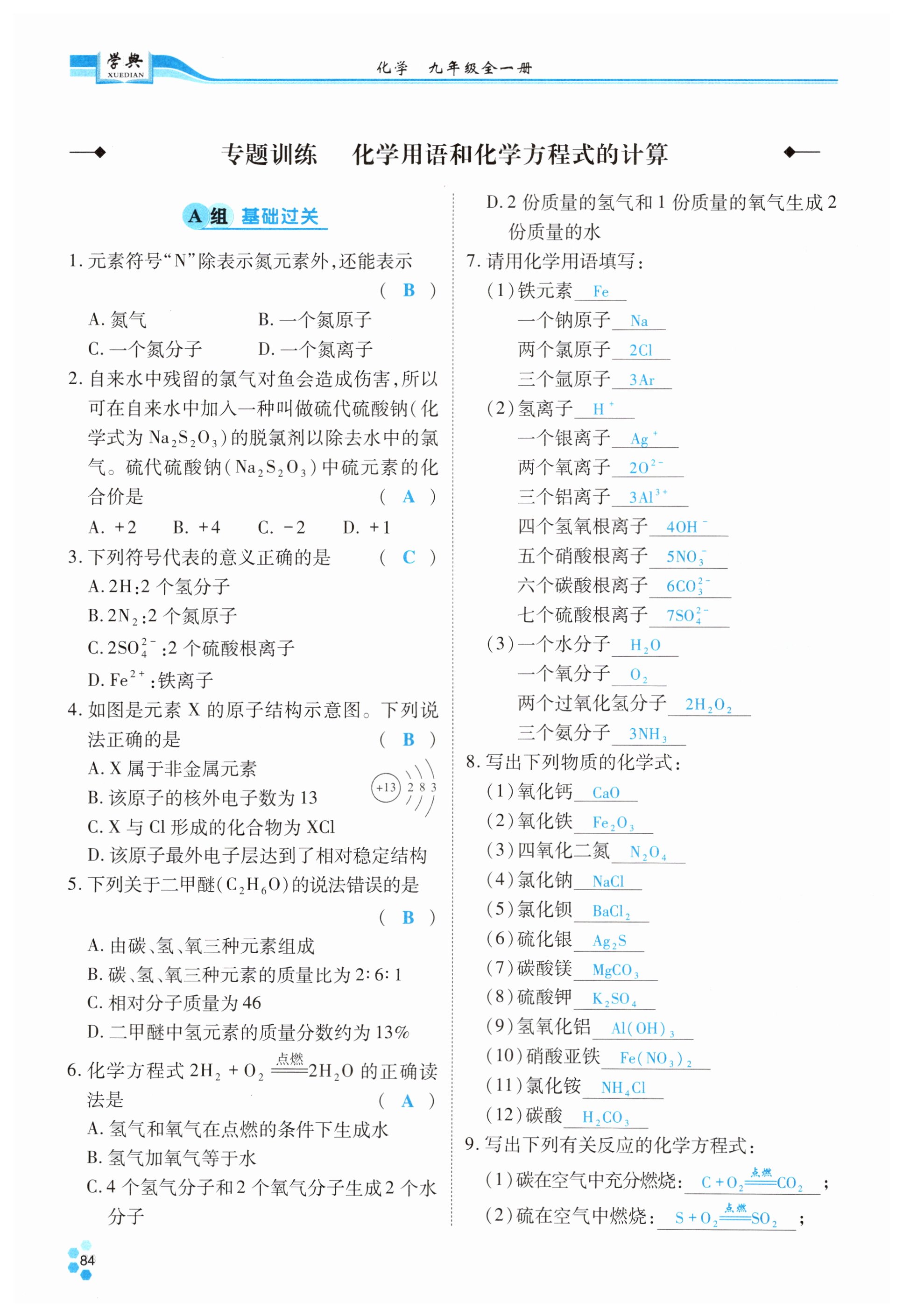 注:目前有些书本章节名称可能整理的还不是很完善,但都是按照顺序排列的,请同学们按照顺序仔细查找。练习册 2024年学典四川九年级化学全一册人教版 答案主要是用来给同学们做完题方便对答案用的,请勿直接抄袭。