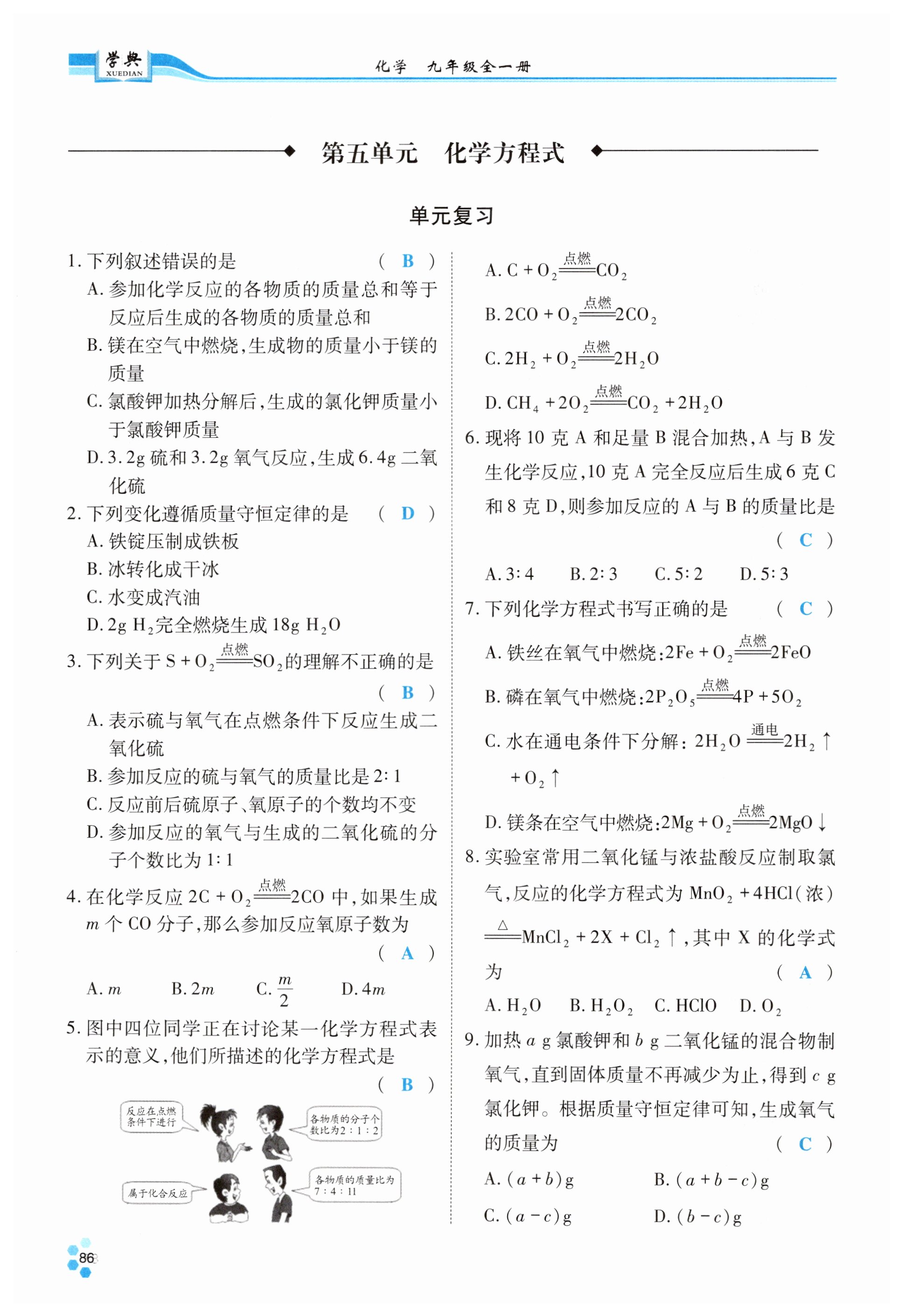 注:目前有些书本章节名称可能整理的还不是很完善,但都是按照顺序排列的,请同学们按照顺序仔细查找。练习册 2024年学典四川九年级化学全一册人教版 答案主要是用来给同学们做完题方便对答案用的,请勿直接抄袭。