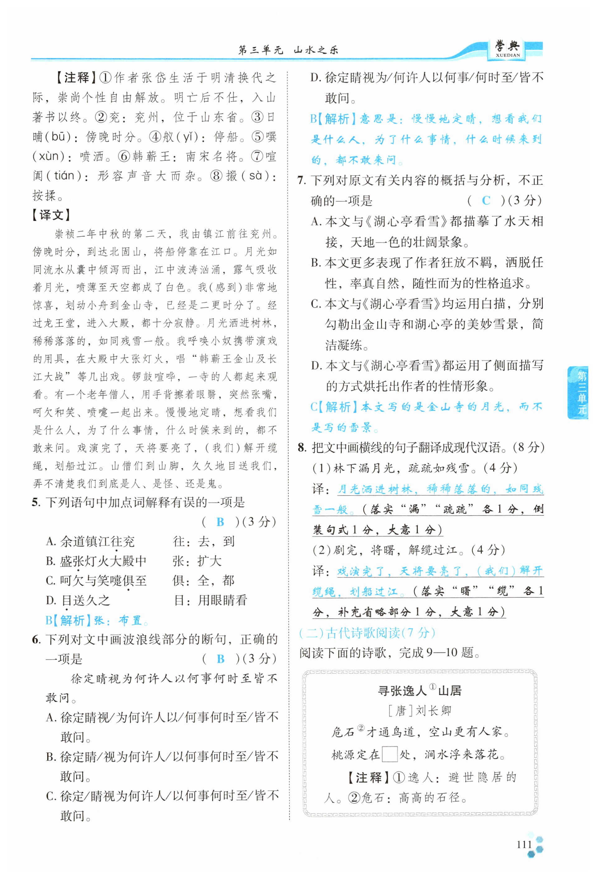 注:目前有些书本章节名称可能整理的还不是很完善,但都是按照顺序排列的,请同学们按照顺序仔细查找。练习册 2024年学典四川九年级语文全一册人教版 答案主要是用来给同学们做完题方便对答案用的,请勿直接抄袭。