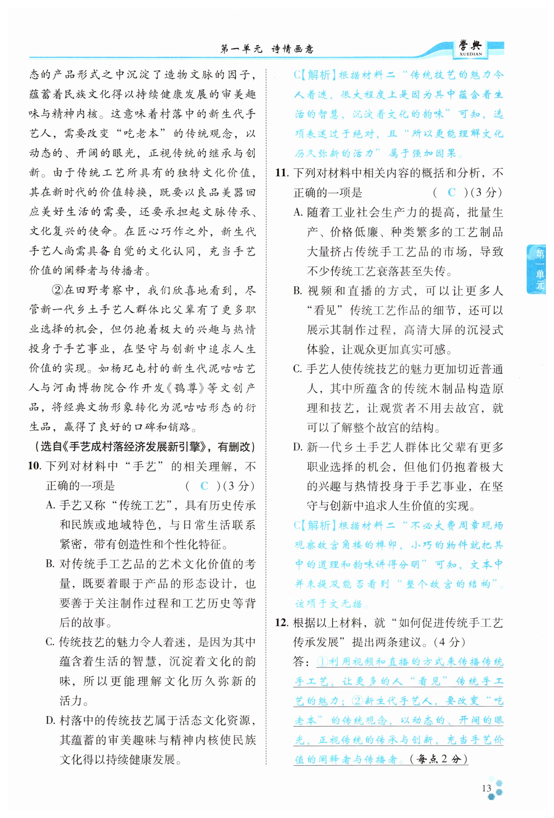 注:目前有些书本章节名称可能整理的还不是很完善,但都是按照顺序排列的,请同学们按照顺序仔细查找。练习册 2024年学典四川九年级语文全一册人教版 答案主要是用来给同学们做完题方便对答案用的,请勿直接抄袭。