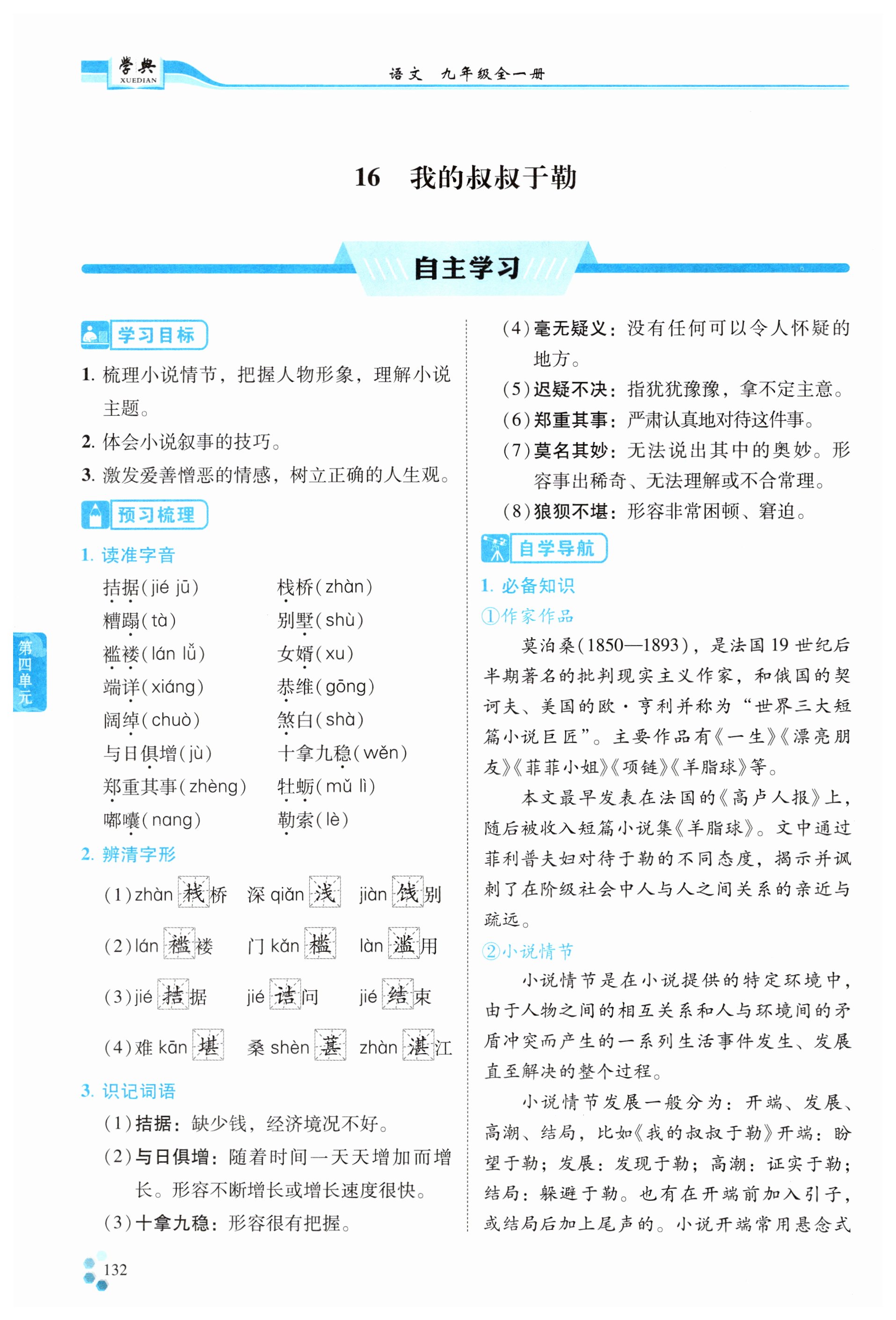 注:目前有些书本章节名称可能整理的还不是很完善,但都是按照顺序排列的,请同学们按照顺序仔细查找。练习册 2024年学典四川九年级语文全一册人教版 答案主要是用来给同学们做完题方便对答案用的,请勿直接抄袭。