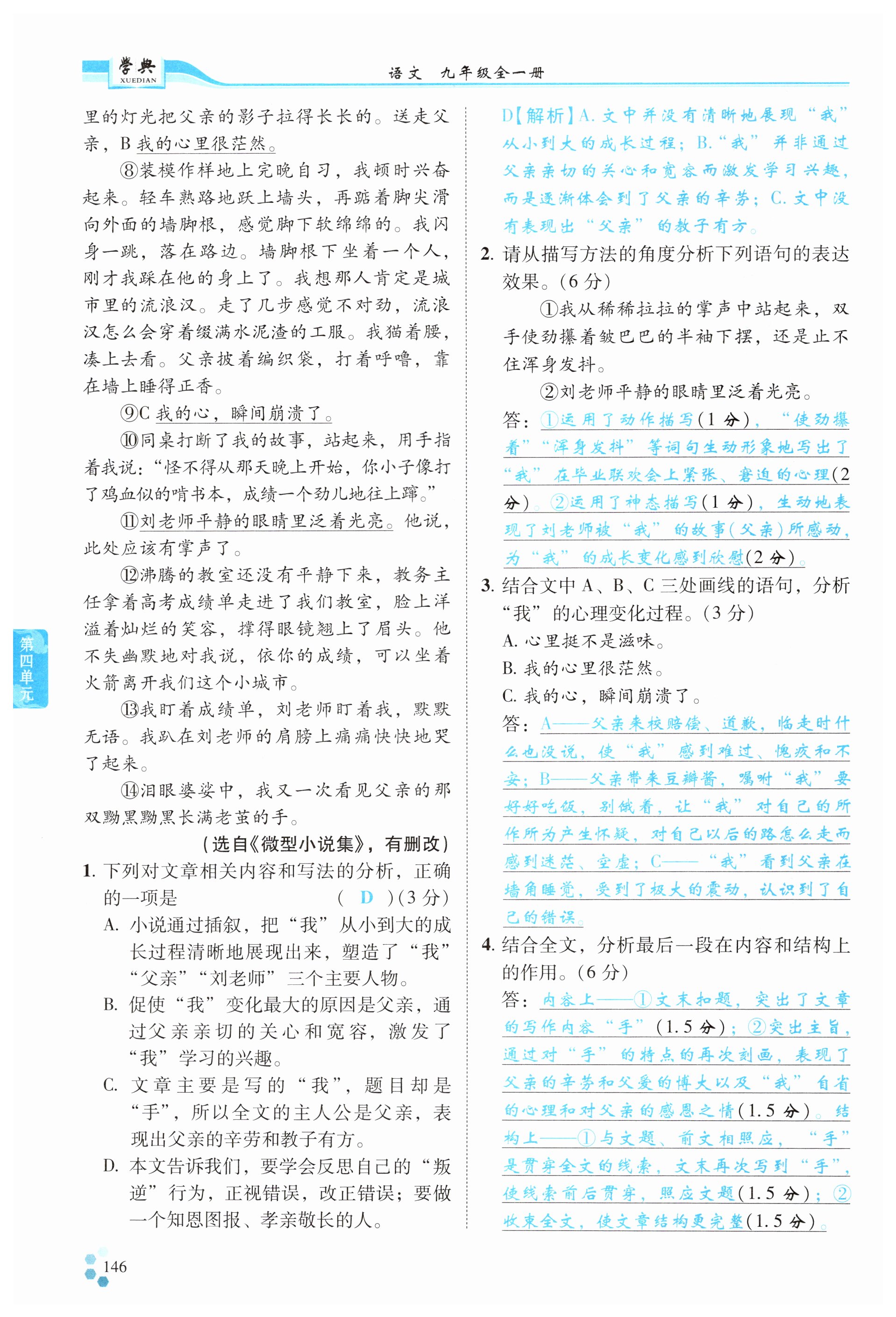注:目前有些书本章节名称可能整理的还不是很完善,但都是按照顺序排列的,请同学们按照顺序仔细查找。练习册 2024年学典四川九年级语文全一册人教版 答案主要是用来给同学们做完题方便对答案用的,请勿直接抄袭。