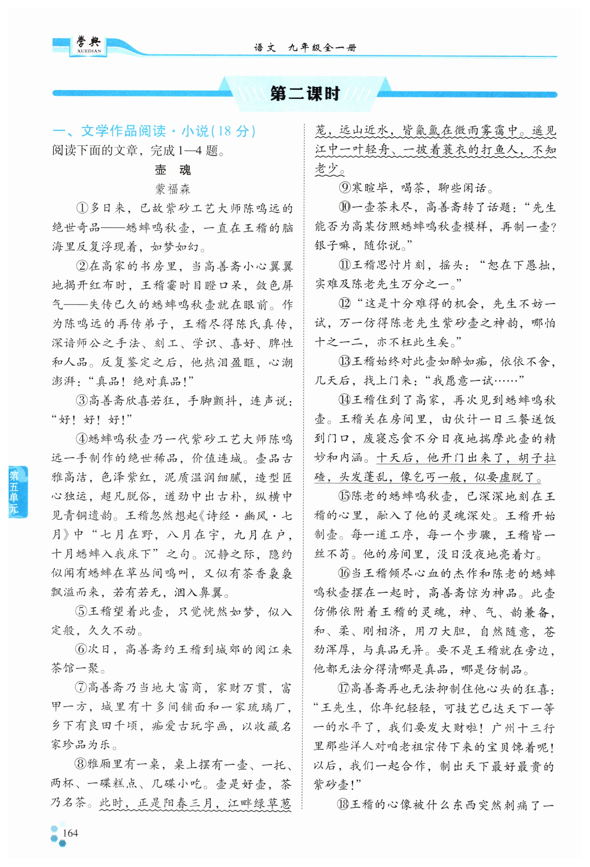 注:目前有些书本章节名称可能整理的还不是很完善,但都是按照顺序排列的,请同学们按照顺序仔细查找。练习册 2024年学典四川九年级语文全一册人教版 答案主要是用来给同学们做完题方便对答案用的,请勿直接抄袭。