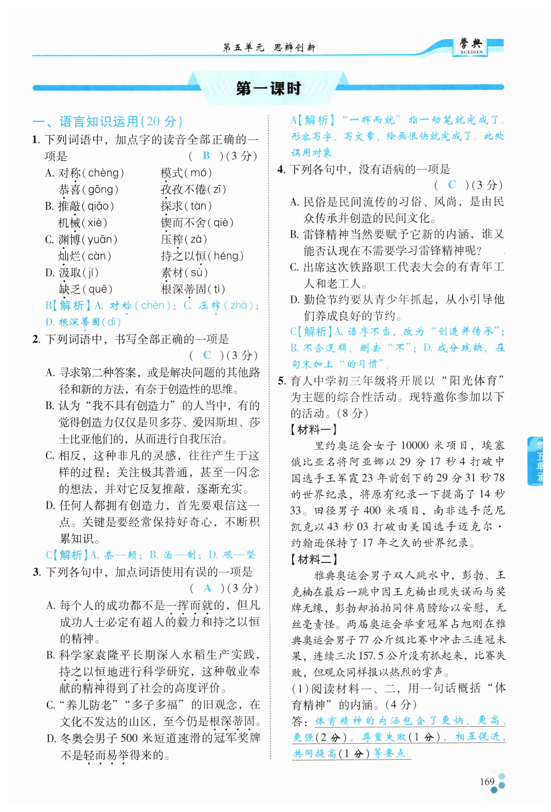 注:目前有些书本章节名称可能整理的还不是很完善,但都是按照顺序排列的,请同学们按照顺序仔细查找。练习册 2024年学典四川九年级语文全一册人教版 答案主要是用来给同学们做完题方便对答案用的,请勿直接抄袭。