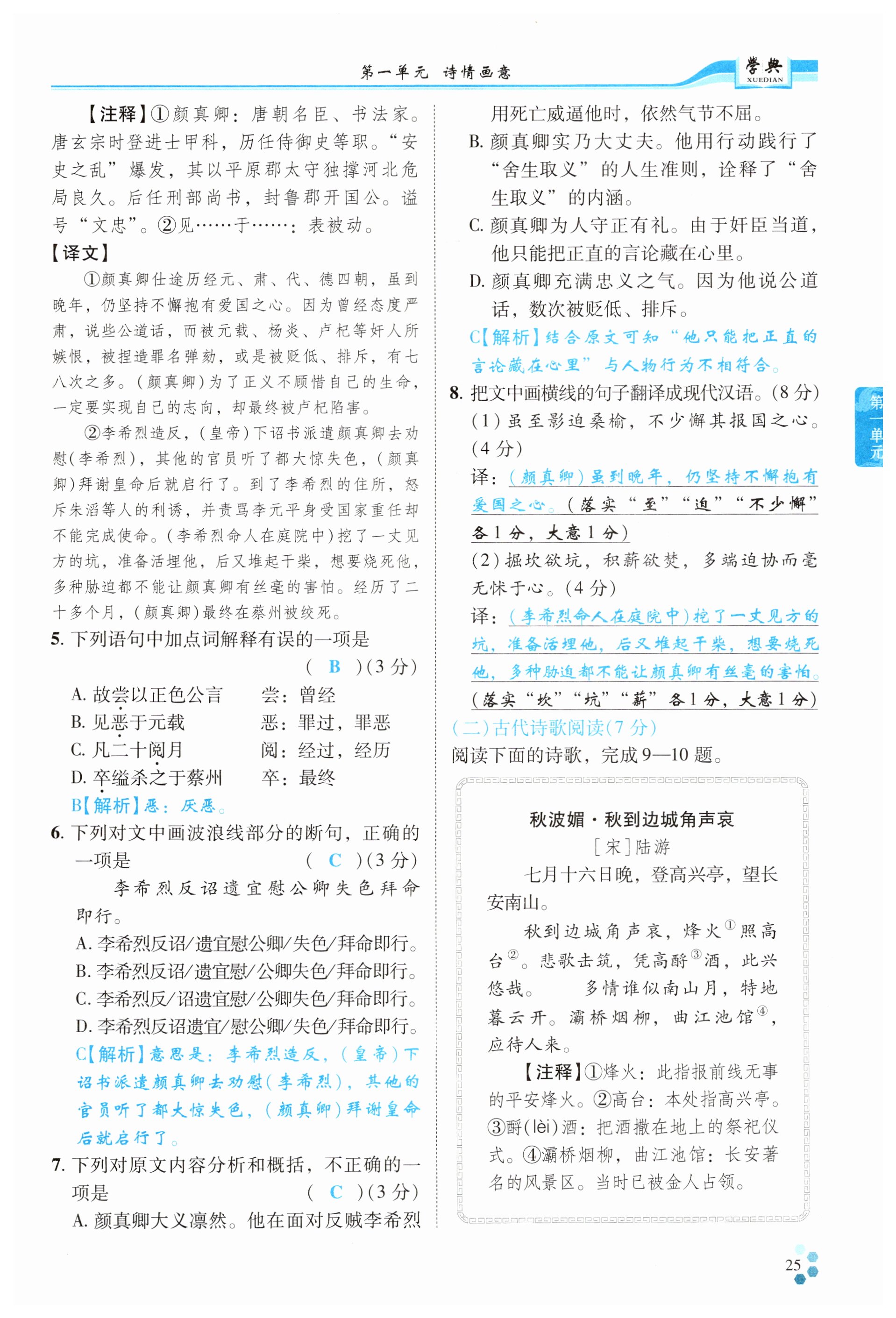 注:目前有些书本章节名称可能整理的还不是很完善,但都是按照顺序排列的,请同学们按照顺序仔细查找。练习册 2024年学典四川九年级语文全一册人教版 答案主要是用来给同学们做完题方便对答案用的,请勿直接抄袭。