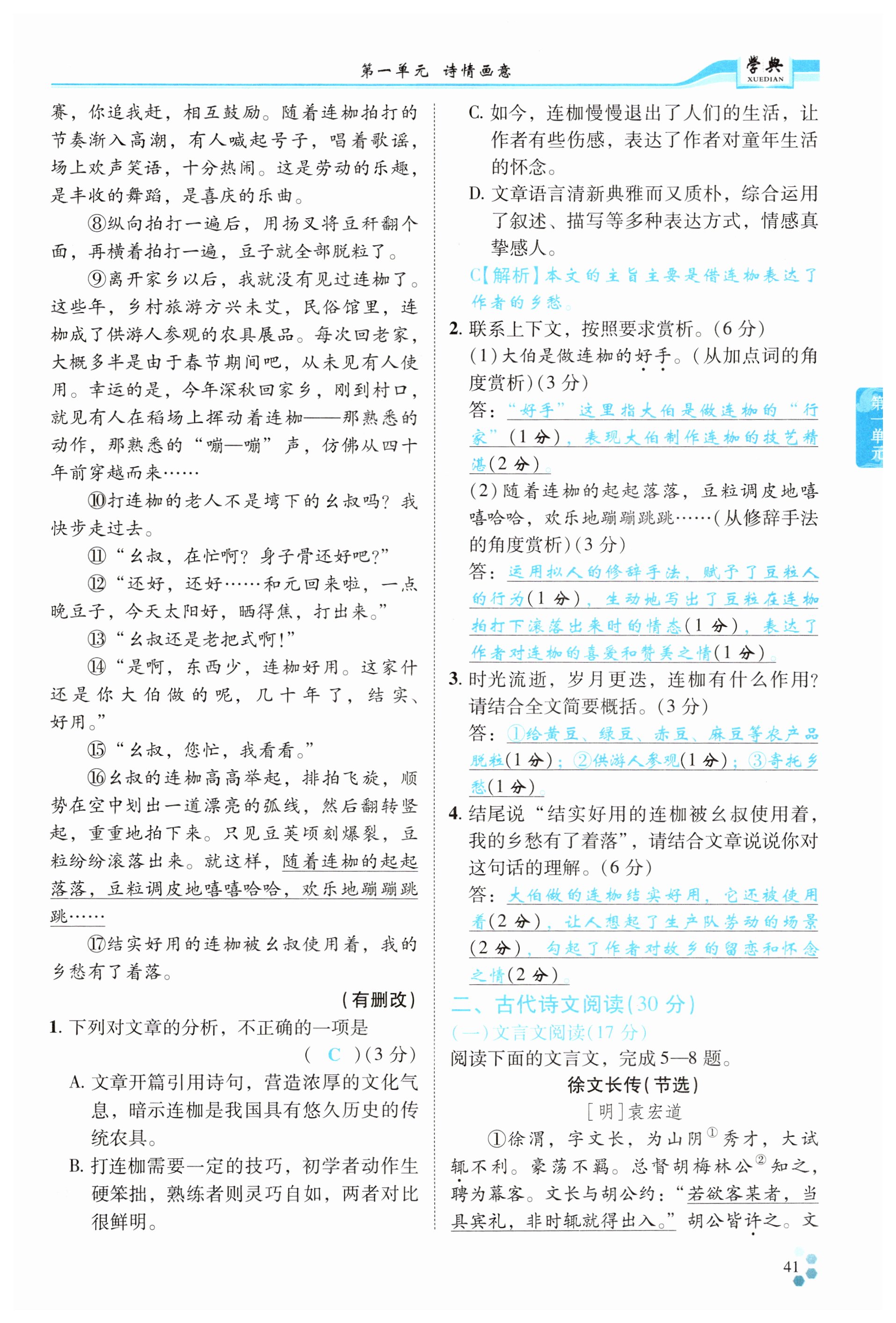 注:目前有些书本章节名称可能整理的还不是很完善,但都是按照顺序排列的,请同学们按照顺序仔细查找。练习册 2024年学典四川九年级语文全一册人教版 答案主要是用来给同学们做完题方便对答案用的,请勿直接抄袭。