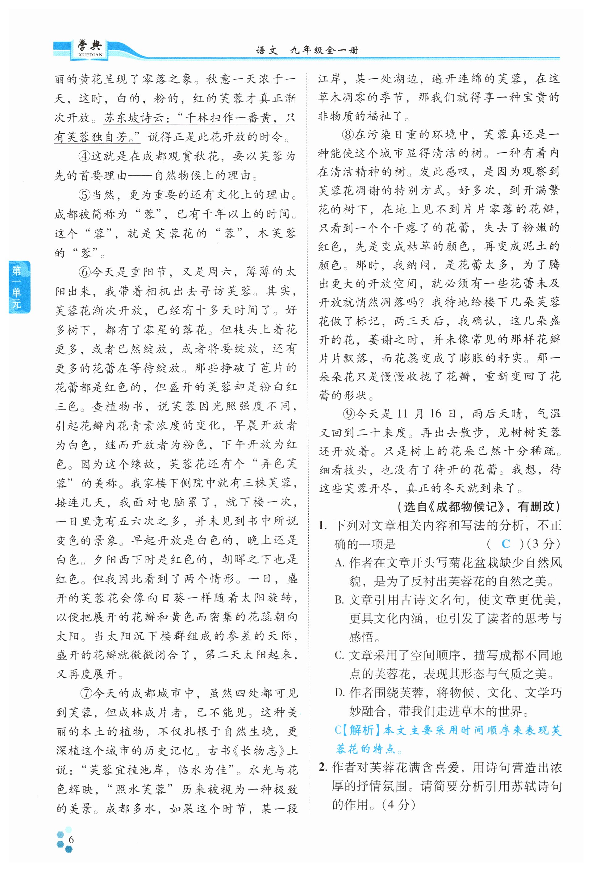 注:目前有些书本章节名称可能整理的还不是很完善,但都是按照顺序排列的,请同学们按照顺序仔细查找。练习册 2024年学典四川九年级语文全一册人教版 答案主要是用来给同学们做完题方便对答案用的,请勿直接抄袭。