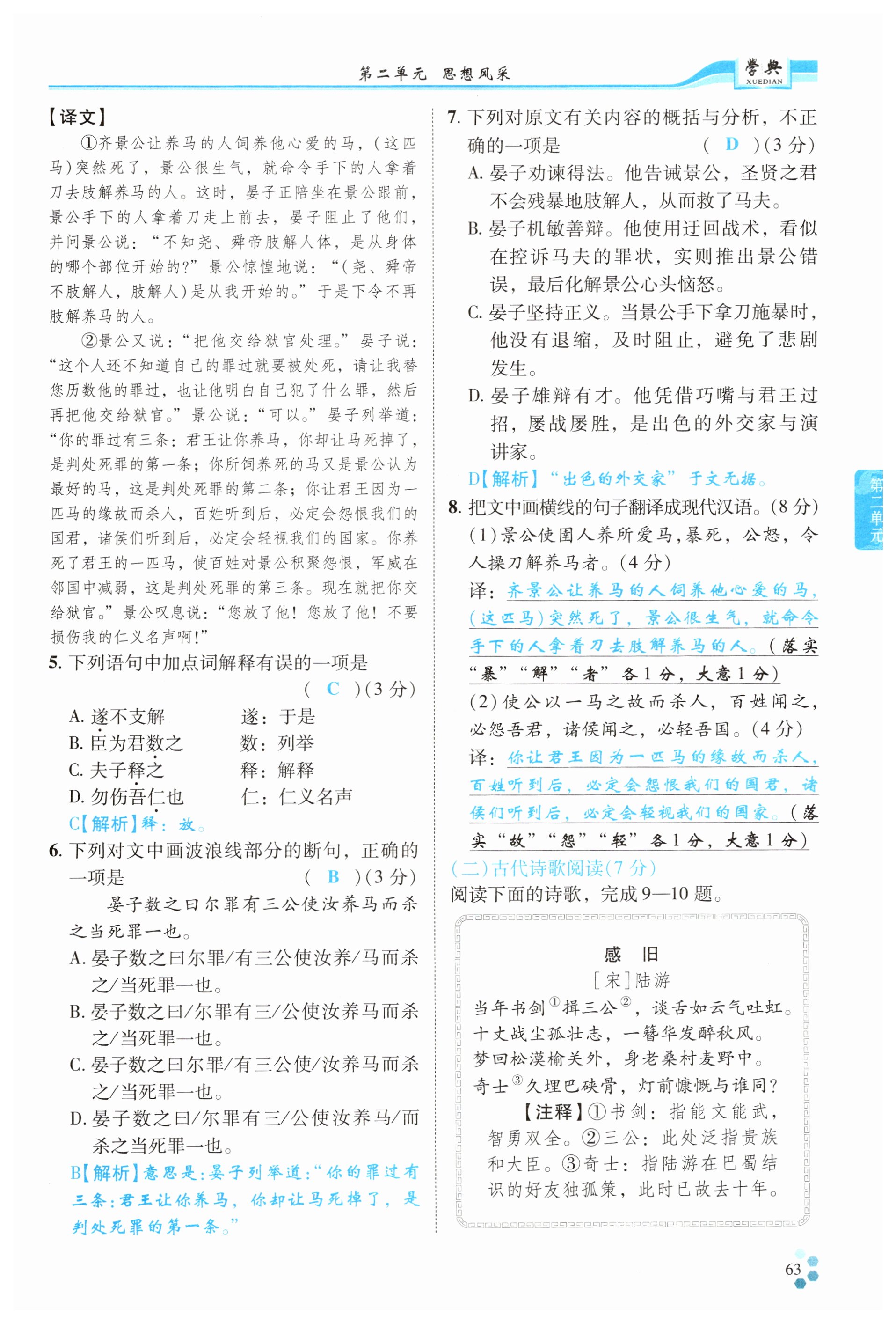 注:目前有些书本章节名称可能整理的还不是很完善,但都是按照顺序排列的,请同学们按照顺序仔细查找。练习册 2024年学典四川九年级语文全一册人教版 答案主要是用来给同学们做完题方便对答案用的,请勿直接抄袭。