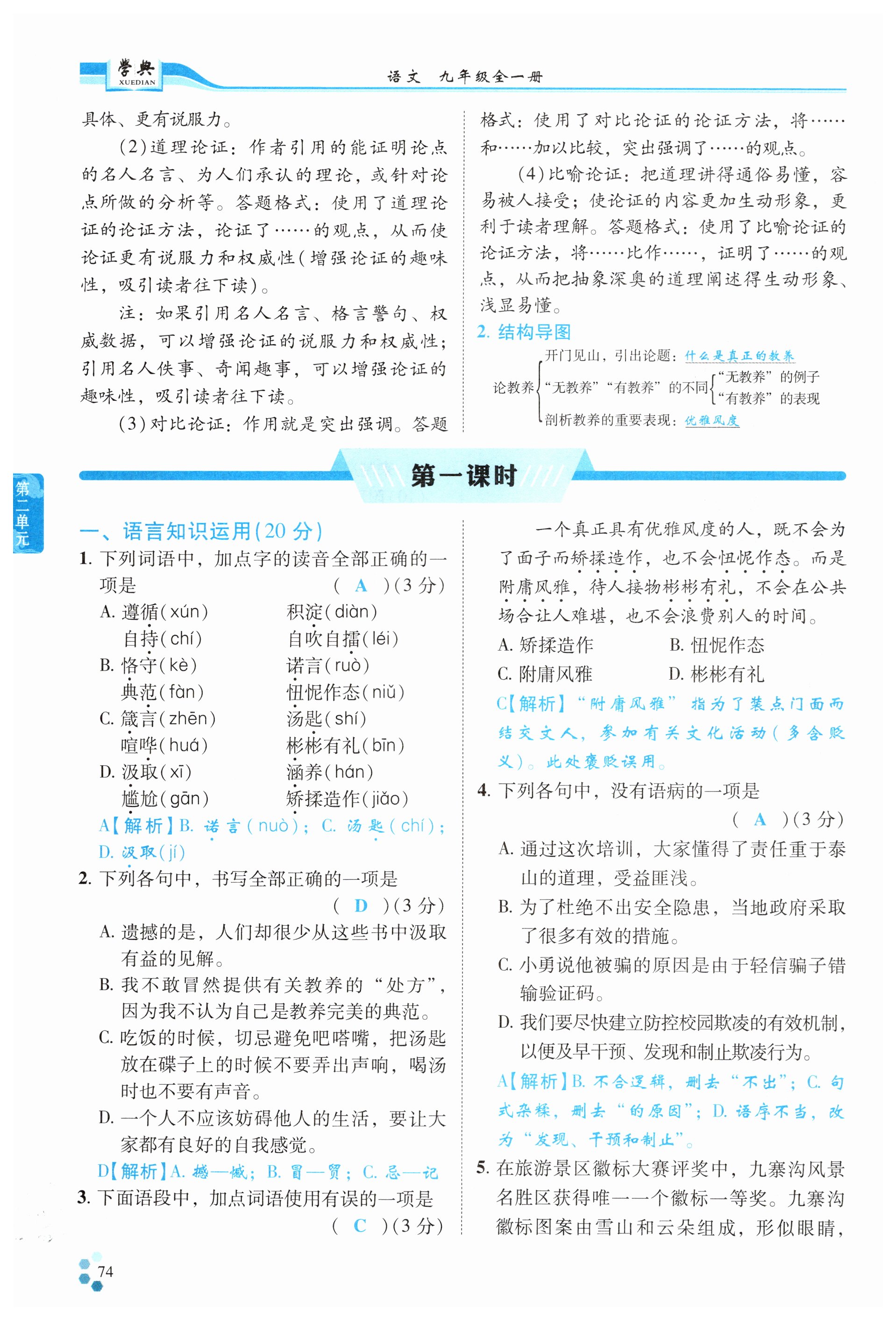 注:目前有些书本章节名称可能整理的还不是很完善,但都是按照顺序排列的,请同学们按照顺序仔细查找。练习册 2024年学典四川九年级语文全一册人教版 答案主要是用来给同学们做完题方便对答案用的,请勿直接抄袭。