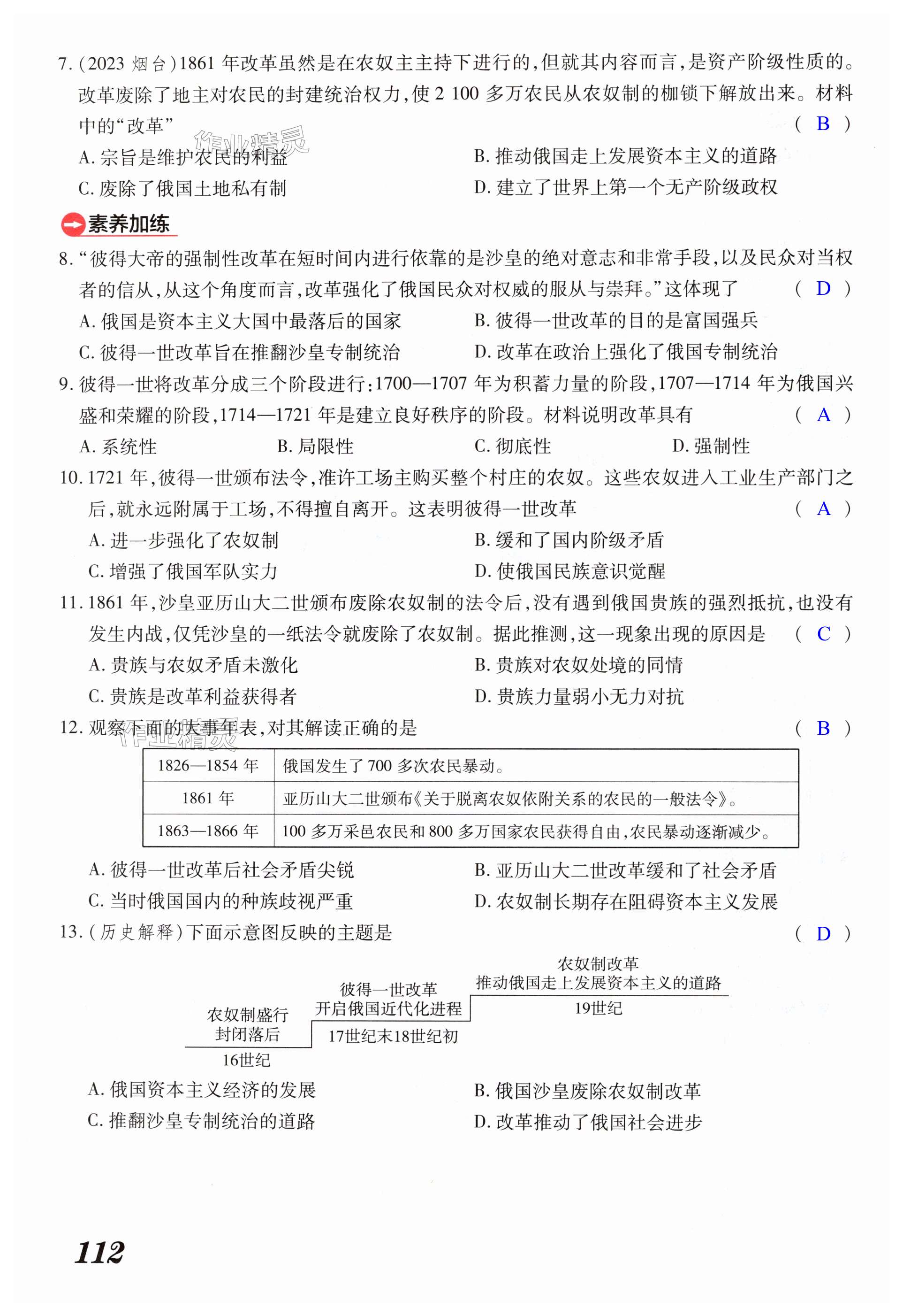 注:目前有些书本章节名称可能整理的还不是很完善,但都是按照顺序排列的,请同学们按照顺序仔细查找。练习册 2024年领跑作业本九年级历史全一册人教版深圳专版 答案主要是用来给同学们做完题方便对答案用的,请勿直接抄袭。