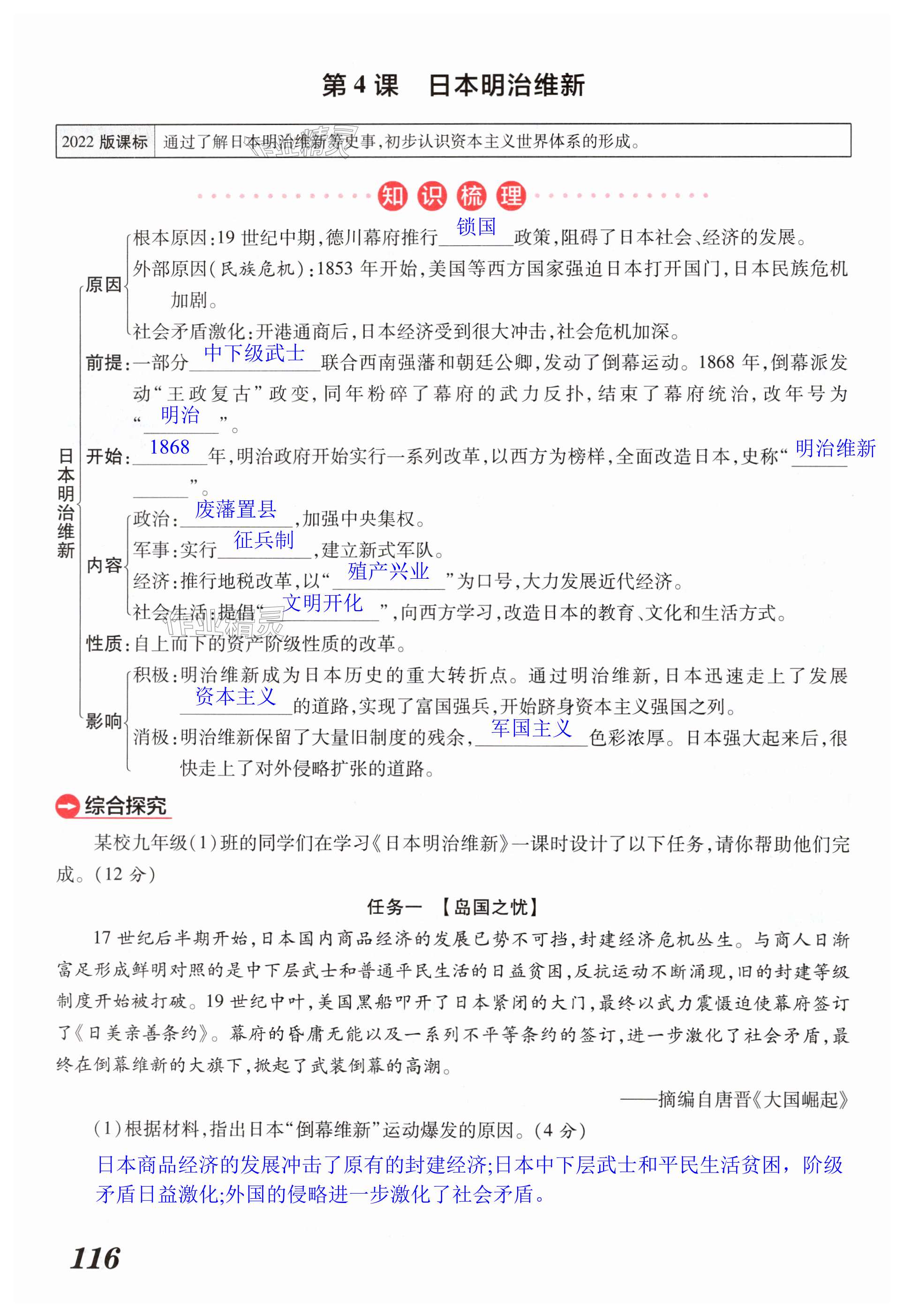 注:目前有些书本章节名称可能整理的还不是很完善,但都是按照顺序排列的,请同学们按照顺序仔细查找。练习册 2024年领跑作业本九年级历史全一册人教版深圳专版 答案主要是用来给同学们做完题方便对答案用的,请勿直接抄袭。