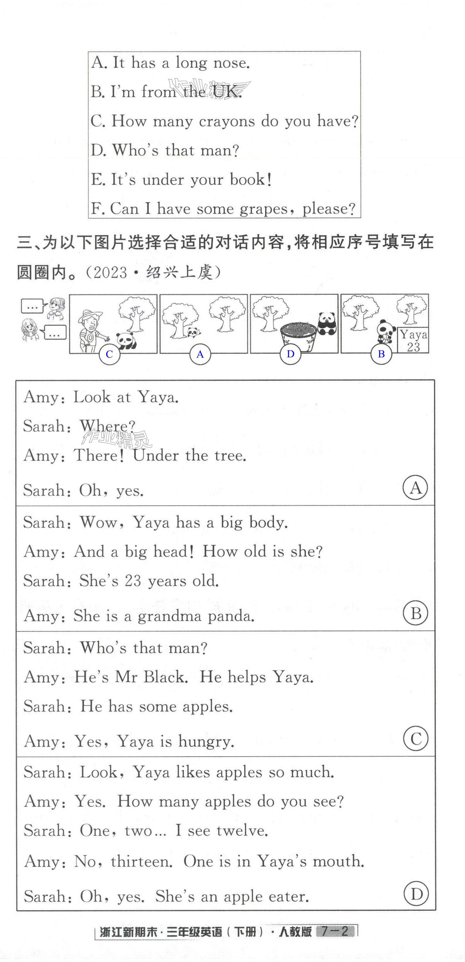 注:目前有些书本章节名称可能整理的还不是很完善,但都是按照顺序排列的,请同学们按照顺序仔细查找。练习册 2024年励耘书业浙江新期末三年级英语下册人教版 答案主要是用来给同学们做完题方便对答案用的,请勿直接抄袭。