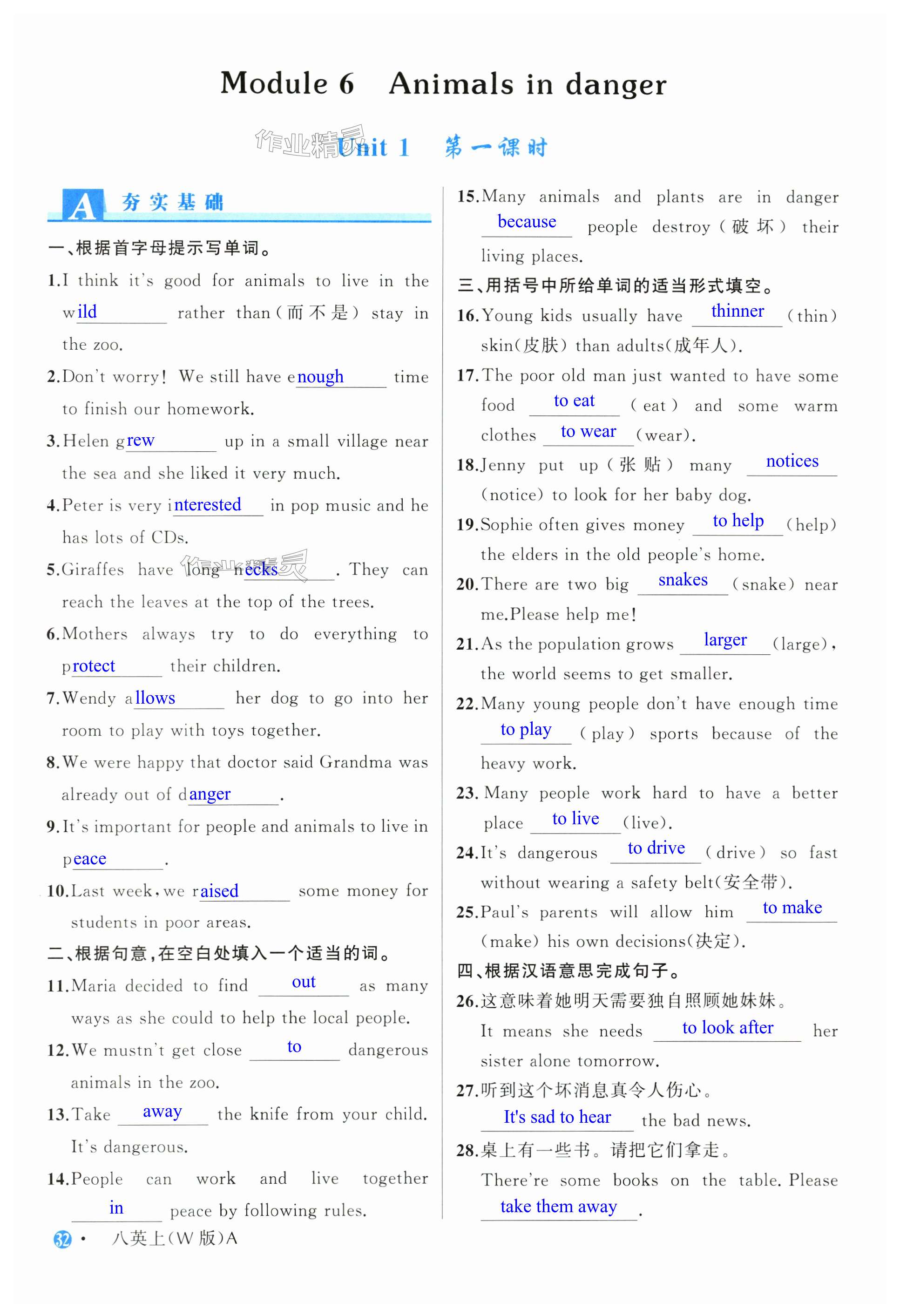 注:目前有些书本章节名称可能整理的还不是很完善,但都是按照顺序排列的,请同学们按照顺序仔细查找。练习册 2024年名师面对面同步作业本八年级英语上册外研版浙江专版 答案主要是用来给同学们做完题方便对答案用的,请勿直接抄袭。