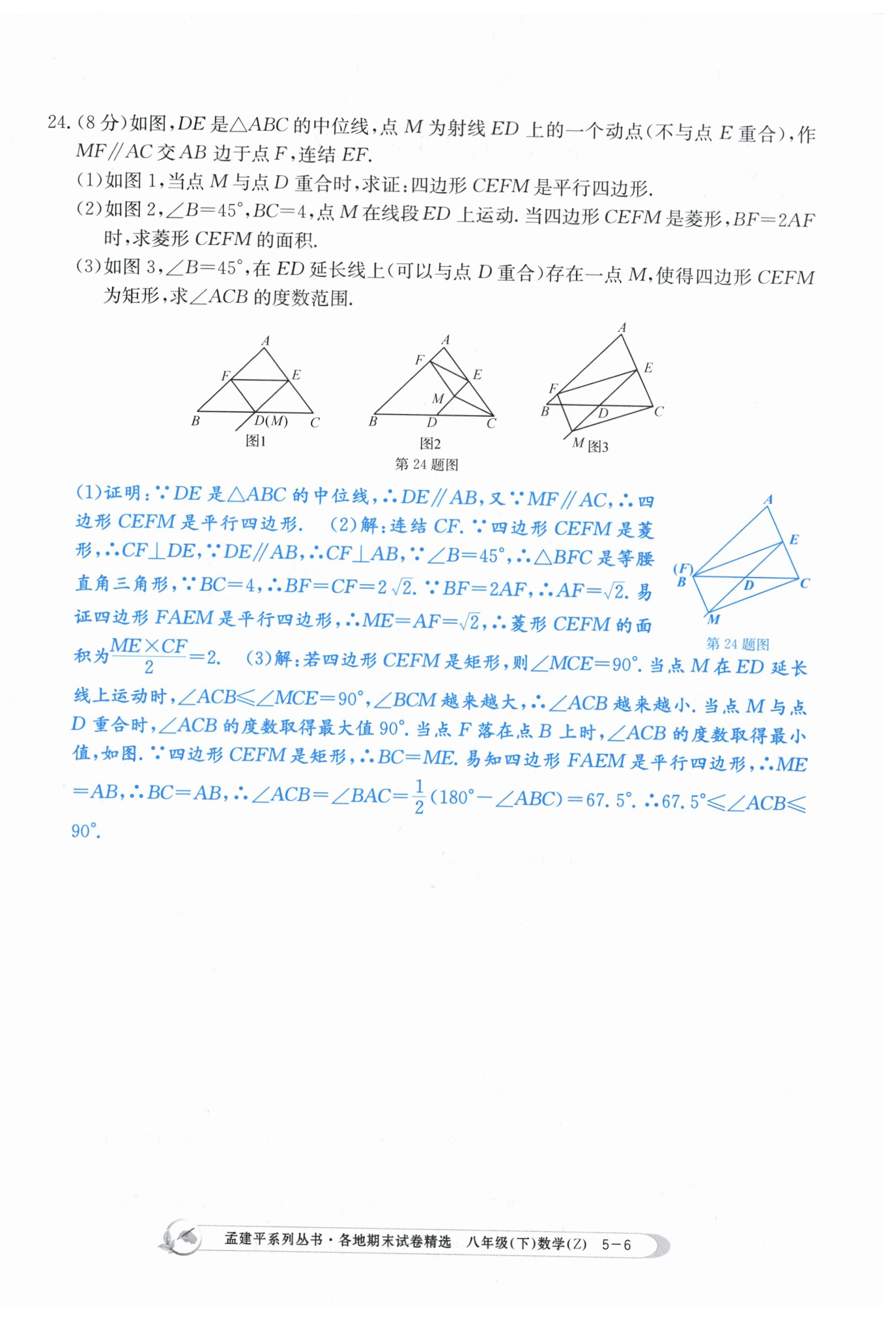 《2024年孟建平各地期末试卷精选八年级数学下册浙教版》