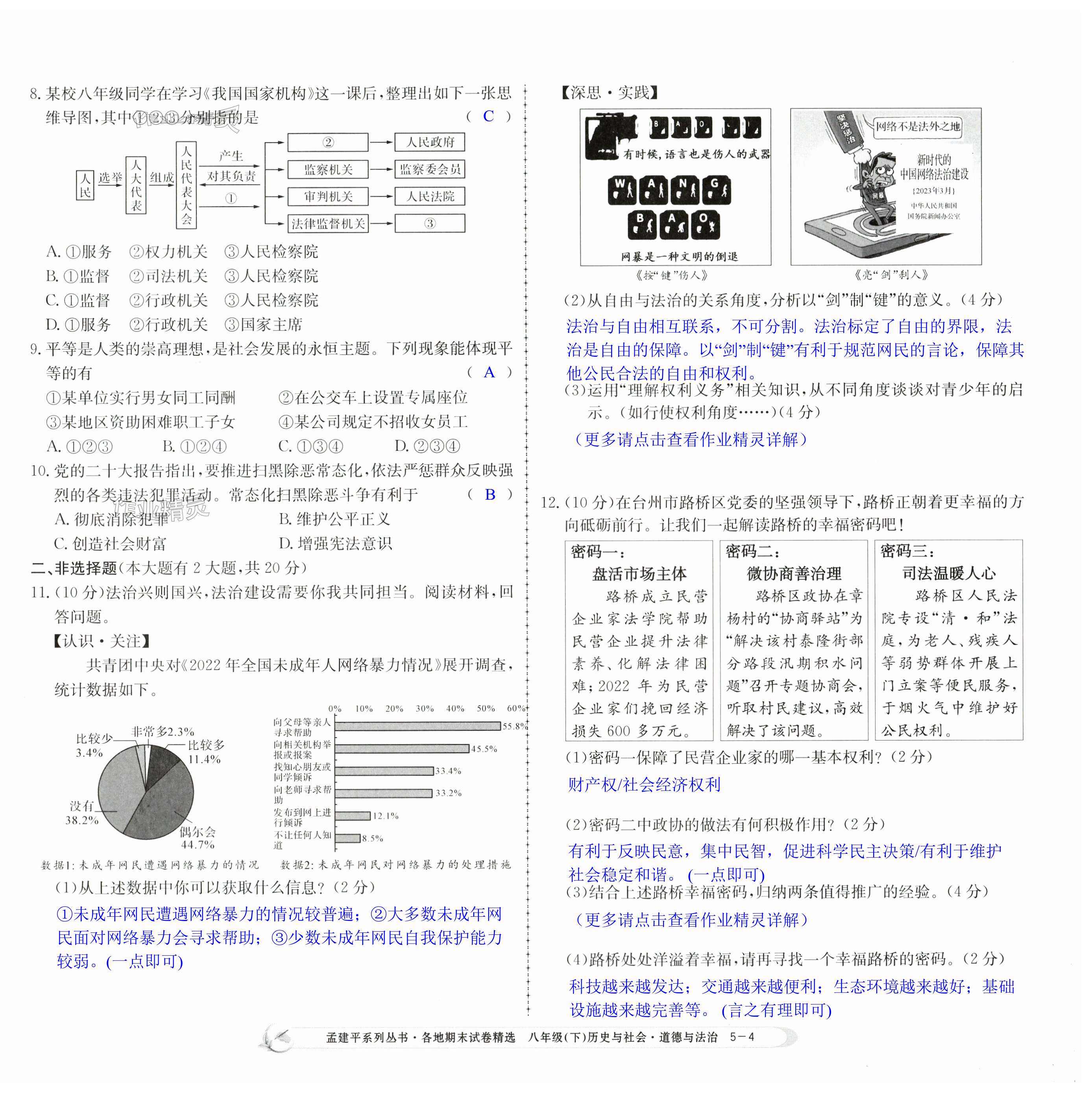 注:目前有些书本章节名称可能整理的还不是很完善,但都是按照顺序排列的,请同学们按照顺序仔细查找。练习册 2024年孟建平各地期末试卷精选八年级历史与社会道德与法治下册人教版 答案主要是用来给同学们做完题方便对答案用的,请勿直接抄袭。