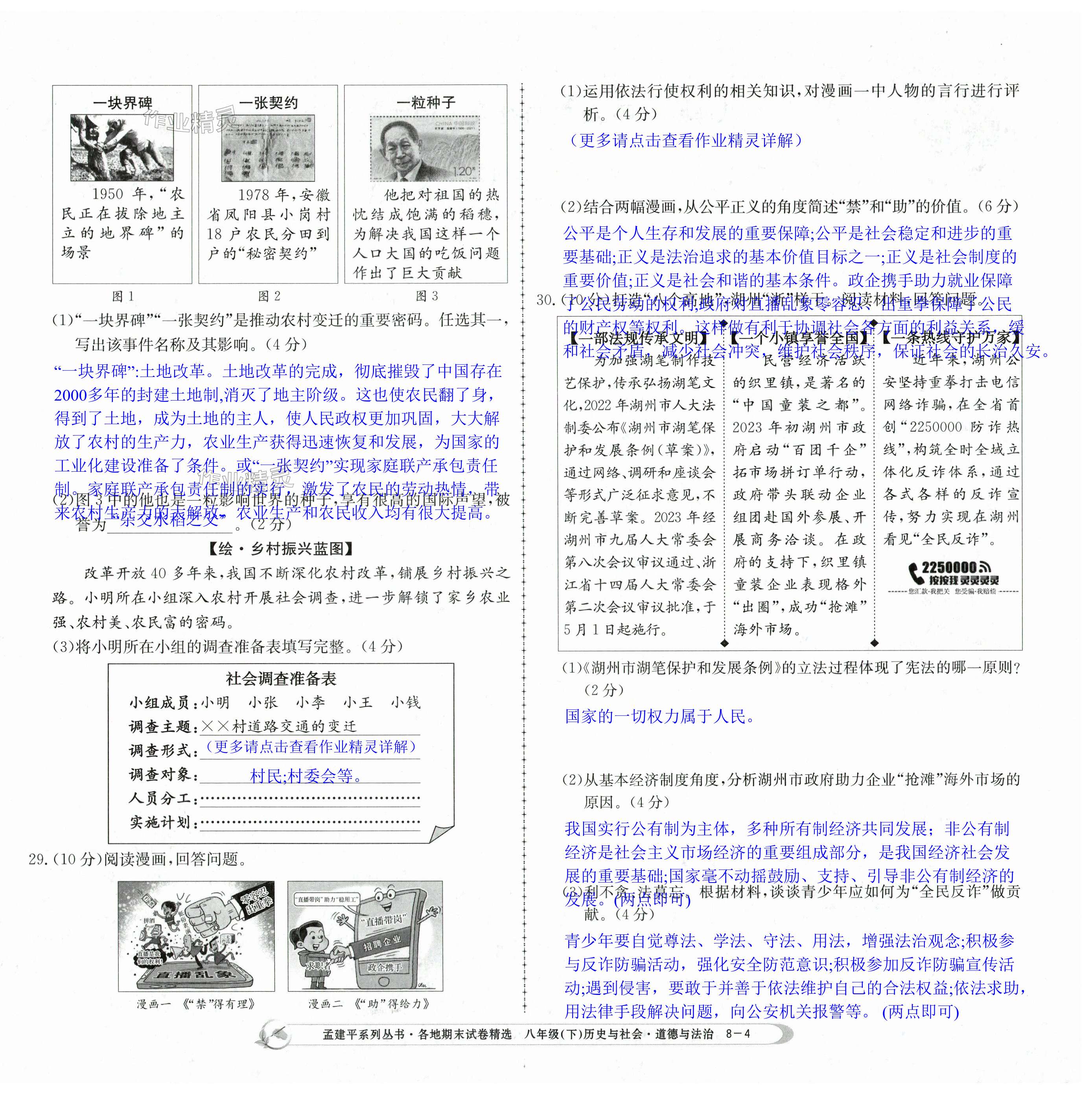 注:目前有些书本章节名称可能整理的还不是很完善,但都是按照顺序排列的,请同学们按照顺序仔细查找。练习册 2024年孟建平各地期末试卷精选八年级历史与社会道德与法治下册人教版 答案主要是用来给同学们做完题方便对答案用的,请勿直接抄袭。