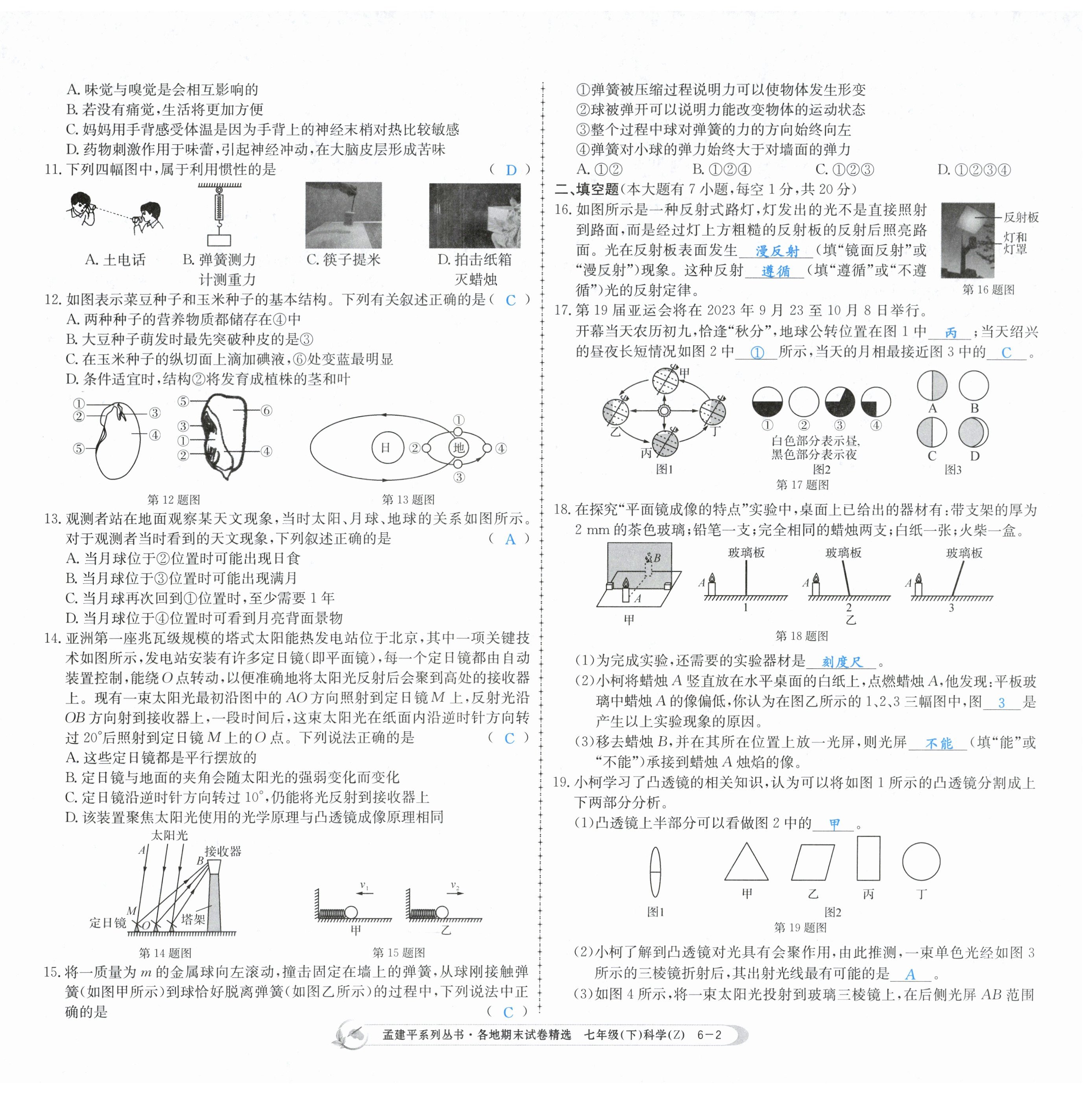 注:目前有些书本章节名称可能整理的还不是很完善,但都是按照顺序排列的,请同学们按照顺序仔细查找。练习册 2024年孟建平各地期末试卷精选七年级科学下册浙教版 答案主要是用来给同学们做完题方便对答案用的,请勿直接抄袭。