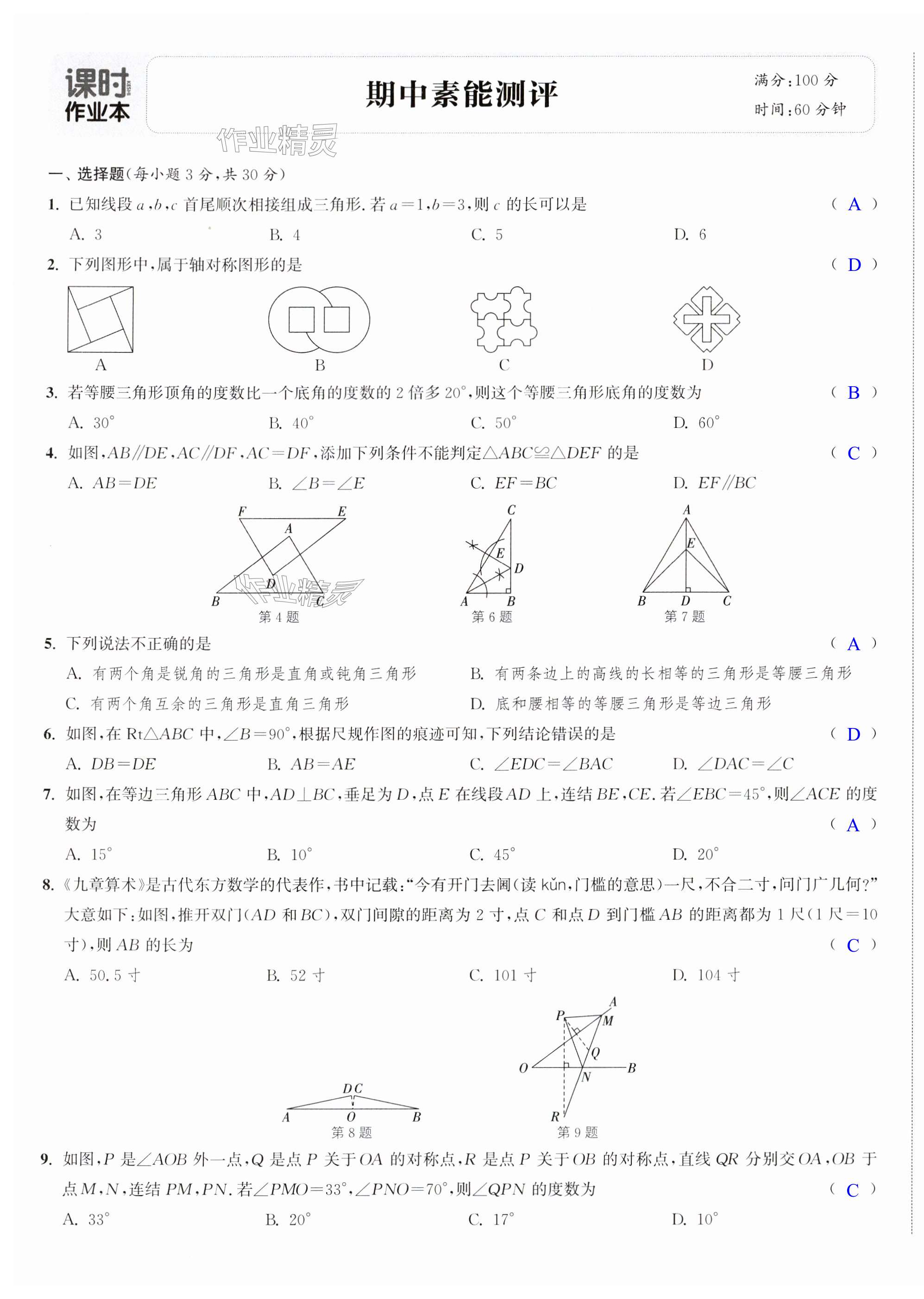 注:目前有些书本章节名称可能整理的还不是很完善,但都是按照顺序排列的,请同学们按照顺序仔细查找。练习册 2024年通城学典课时作业本八年级数学上册浙教版 答案主要是用来给同学们做完题方便对答案用的,请勿直接抄袭。