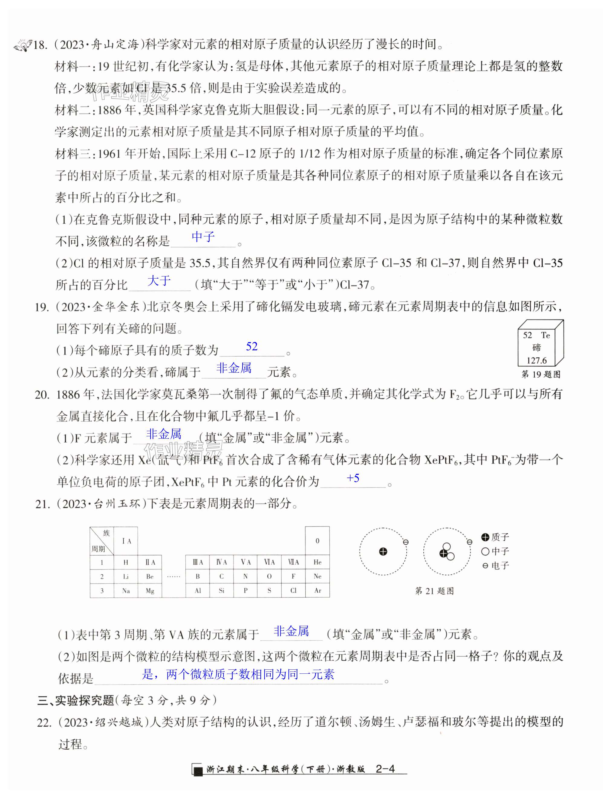 注:目前有些书本章节名称可能整理的还不是很完善,但都是按照顺序排列的,请同学们按照顺序仔细查找。练习册 2024年励耘书业浙江期末八年级科学下册浙教版 答案主要是用来给同学们做完题方便对答案用的,请勿直接抄袭。