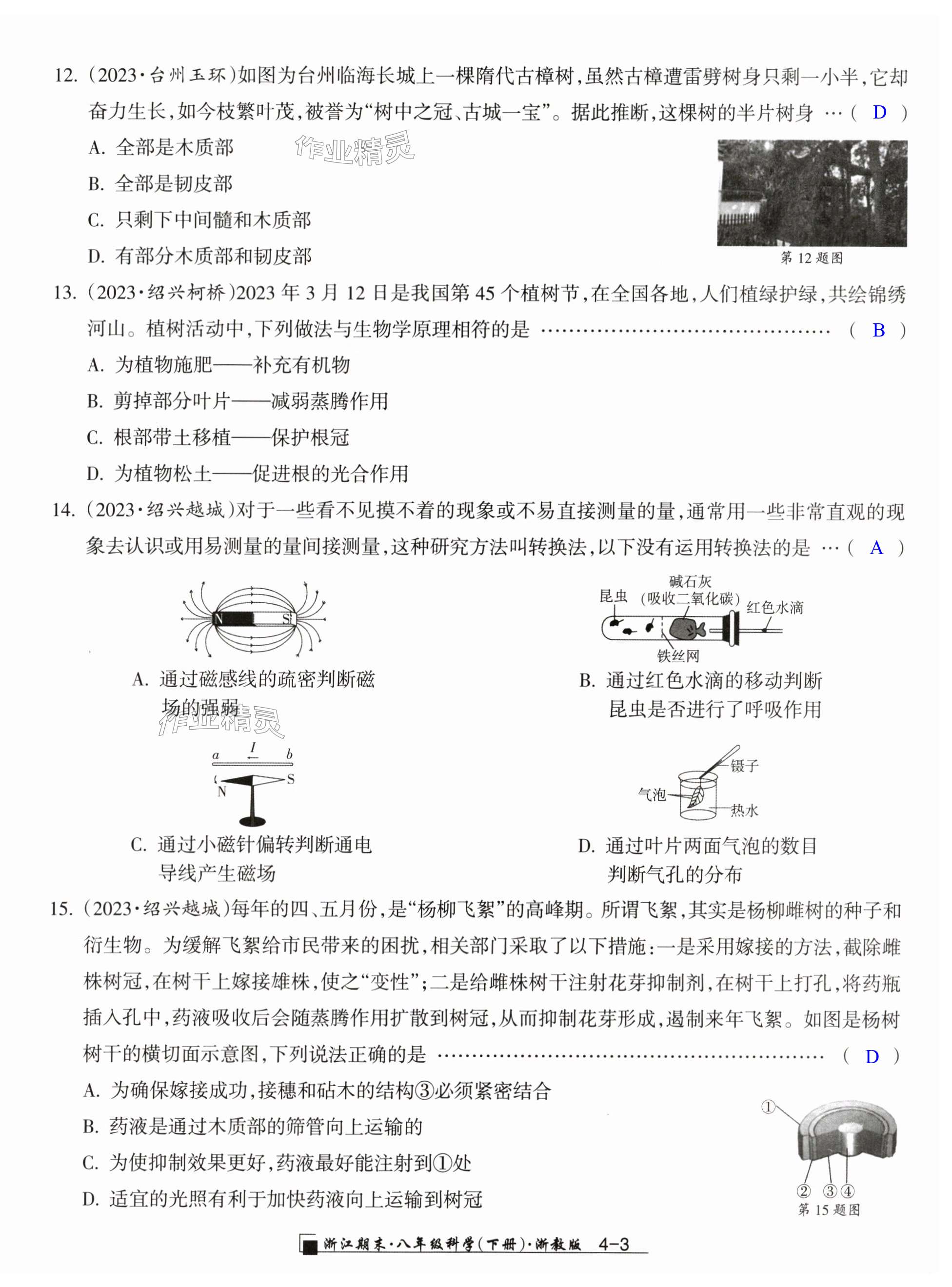 2024年励耘书业浙江期末八年级科学下册浙教版
