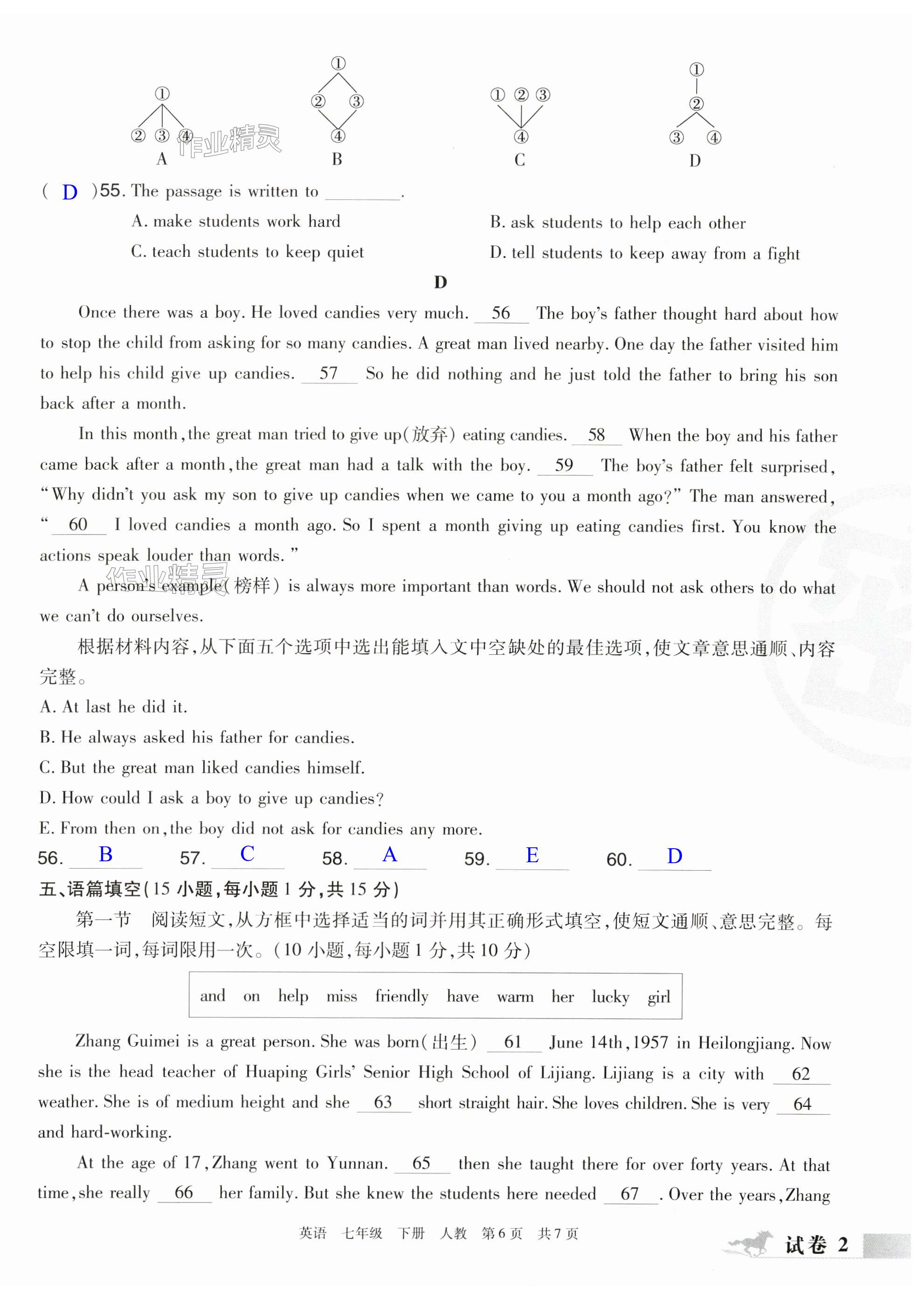 注:目前有些书本章节名称可能整理的还不是很完善,但都是按照顺序排列的,请同学们按照顺序仔细查找。练习册 2024年期末考试必刷卷七年级英语下册人教版河南专版 答案主要是用来给同学们做完题方便对答案用的,请勿直接抄袭。