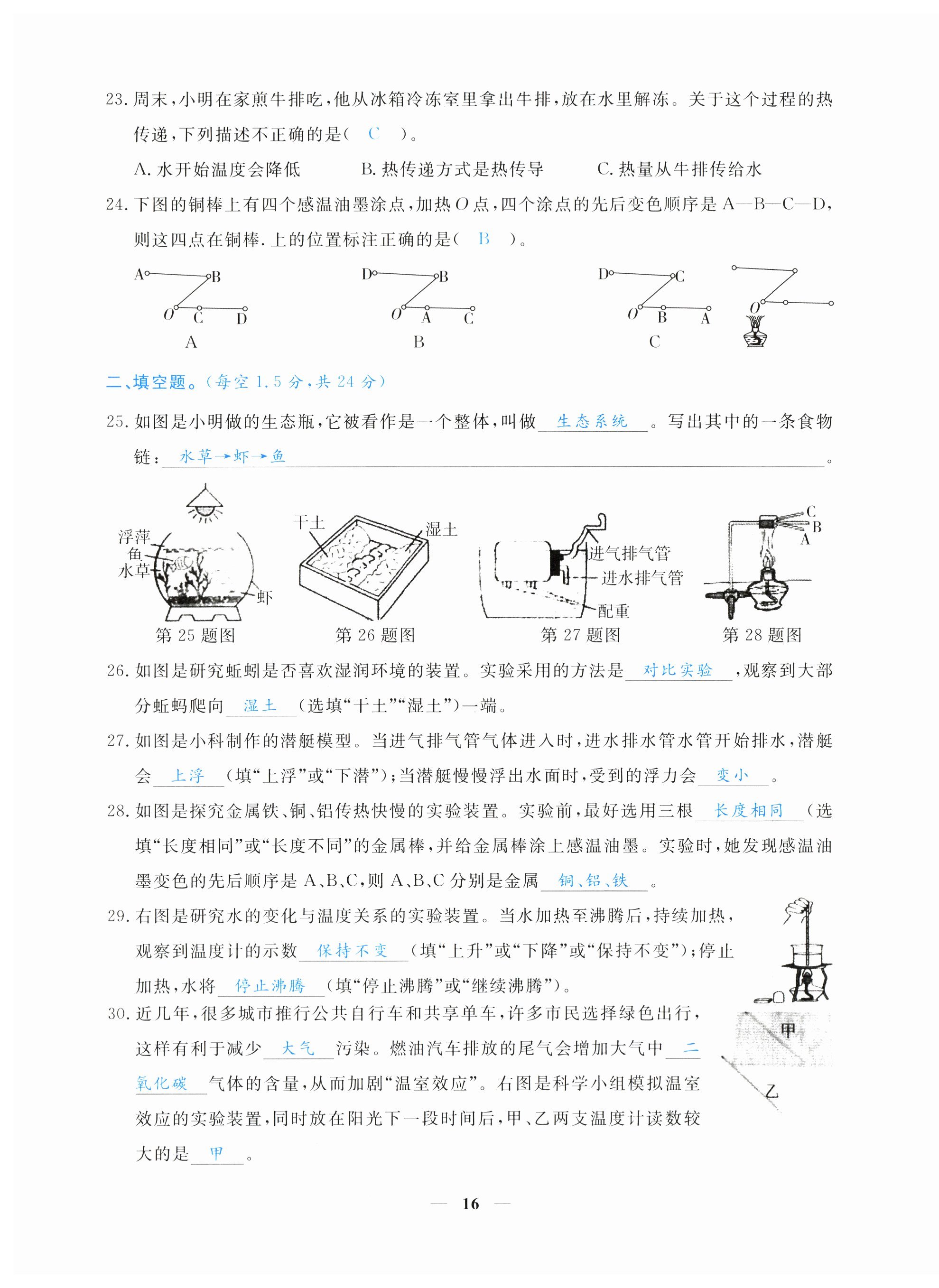 注:目前有些书本章节名称可能整理的还不是很完善,但都是按照顺序排列的,请同学们按照顺序仔细查找。练习册 2024年小学期末加油站五年级科学下册教科版 答案主要是用来给同学们做完题方便对答案用的,请勿直接抄袭。