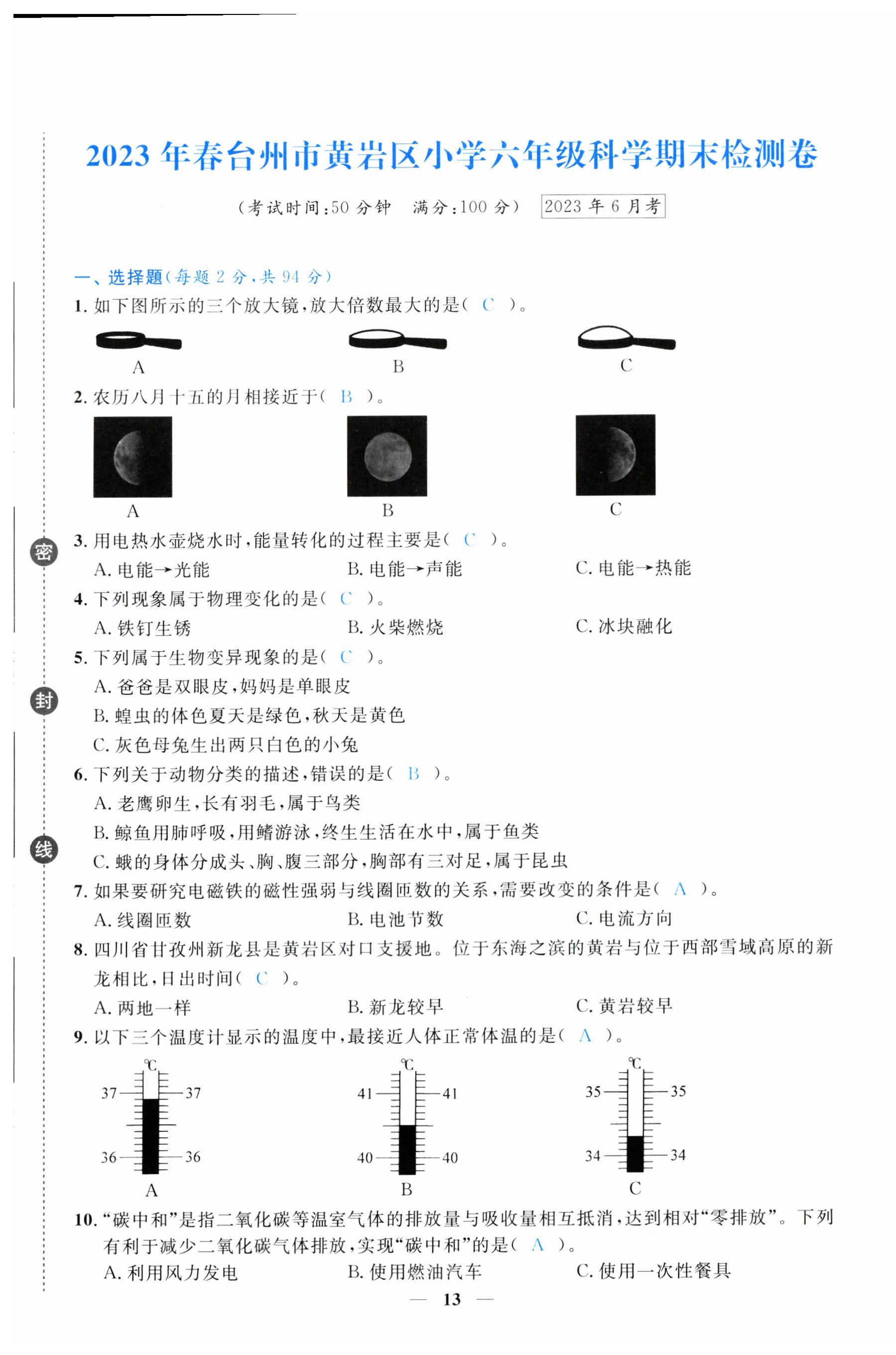 注:目前有些书本章节名称可能整理的还不是很完善,但都是按照顺序排列的,请同学们按照顺序仔细查找。练习册 2024年小学期末加油站六年级科学下册教科版 答案主要是用来给同学们做完题方便对答案用的,请勿直接抄袭。