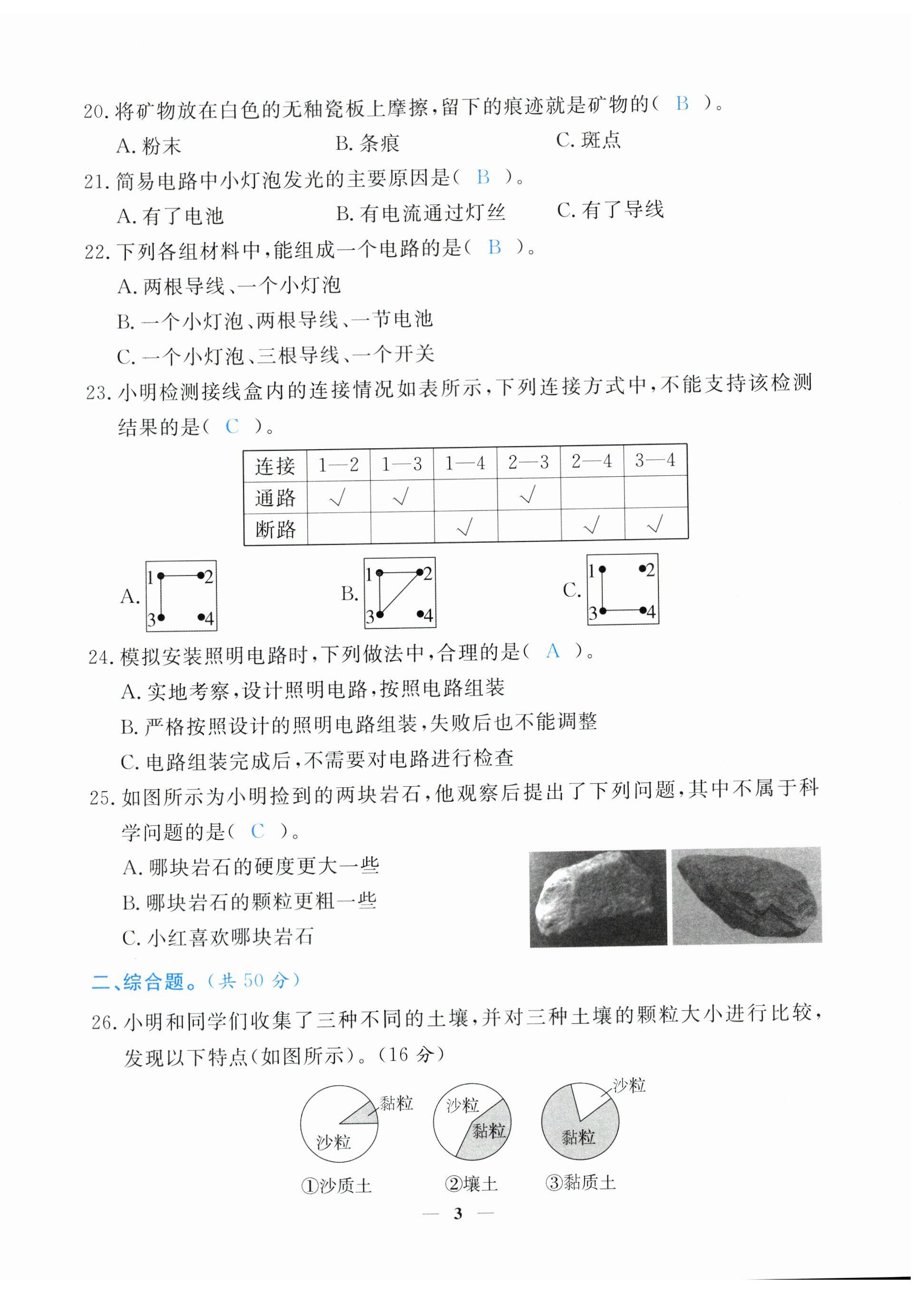 注:目前有些书本章节名称可能整理的还不是很完善,但都是按照顺序排列的,请同学们按照顺序仔细查找。练习册 2024年小学期末加油站四年级科学下册教科版 答案主要是用来给同学们做完题方便对答案用的,请勿直接抄袭。