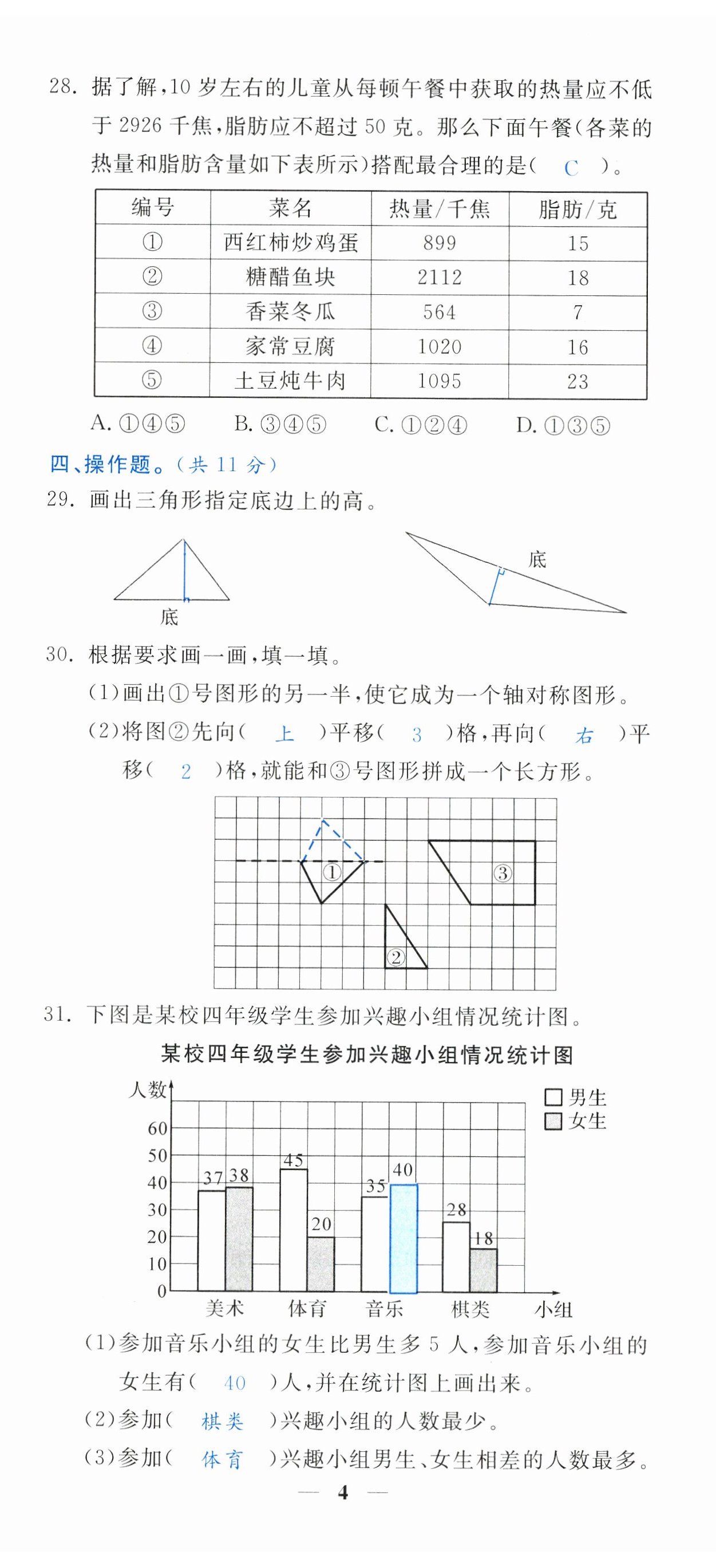 注:目前有些书本章节名称可能整理的还不是很完善,但都是按照顺序排列的,请同学们按照顺序仔细查找。练习册 2024年小学期末加油站四年级数学下册人教版 答案主要是用来给同学们做完题方便对答案用的,请勿直接抄袭。