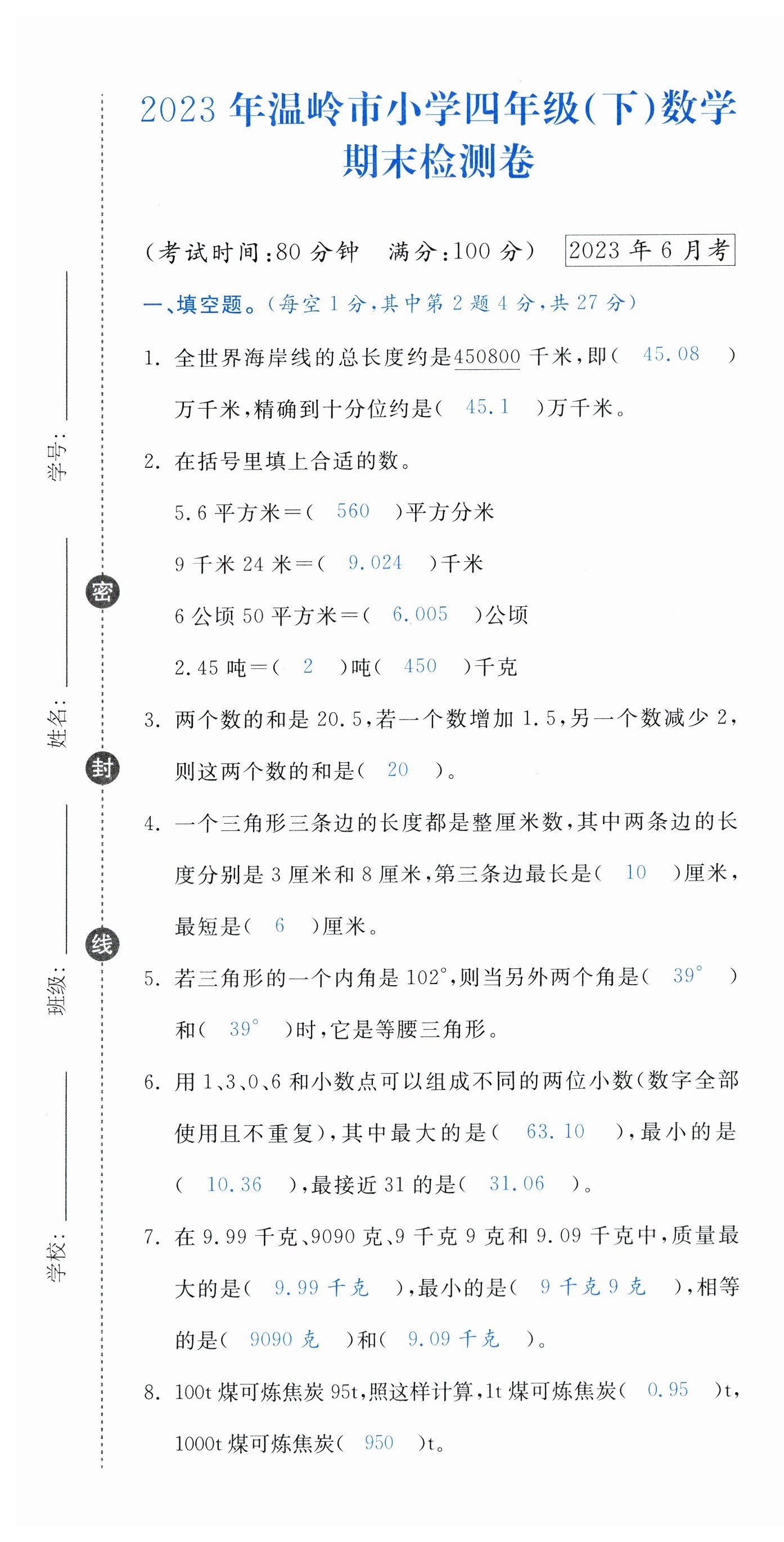 注:目前有些书本章节名称可能整理的还不是很完善,但都是按照顺序排列的,请同学们按照顺序仔细查找。练习册 2024年小学期末加油站四年级数学下册人教版 答案主要是用来给同学们做完题方便对答案用的,请勿直接抄袭。